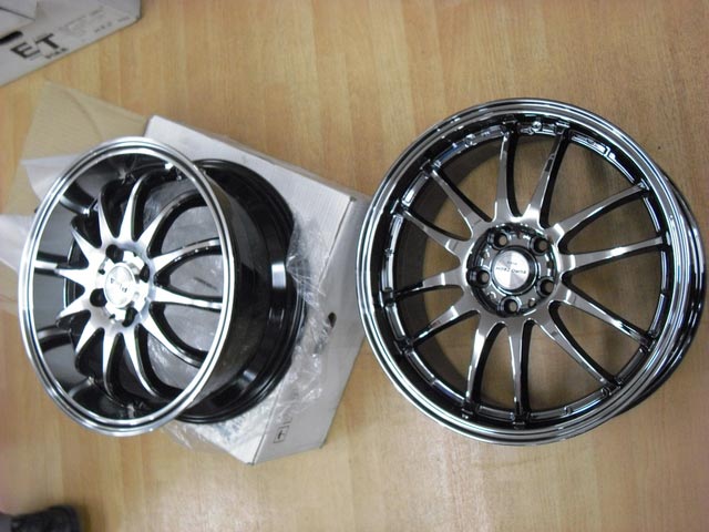 先日、パーツメーカー PIAA 様がサンプル品のホイールをもっての