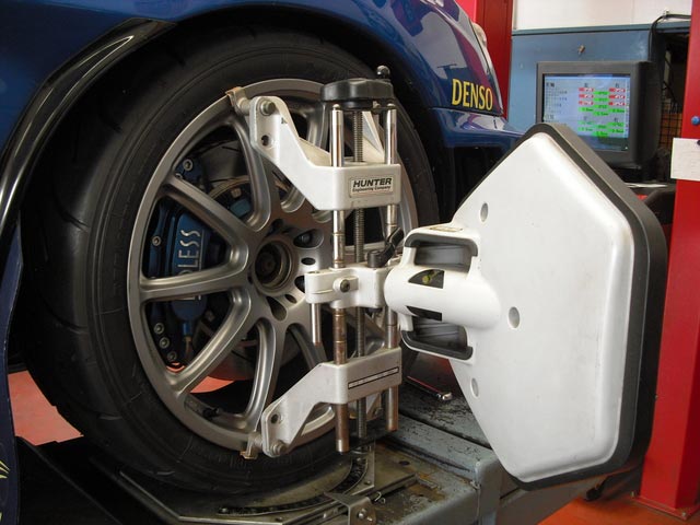 走行会前のアライメント調整、タイヤ交換など