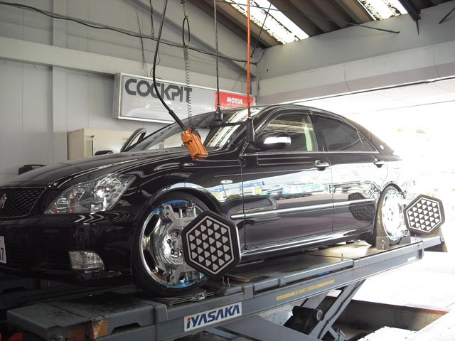 写真のお車は 先日、サスペンションキットを取付させて頂いたクラウンです。