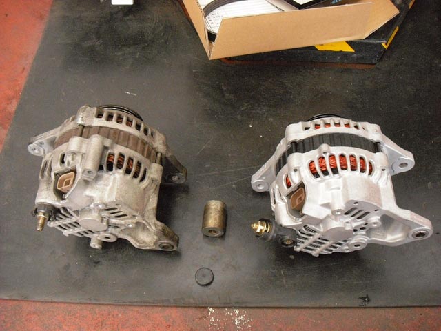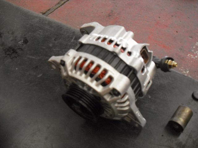 スカイライン R33 のオルタネーター〔発電機〕をリビルト品へ交換です。