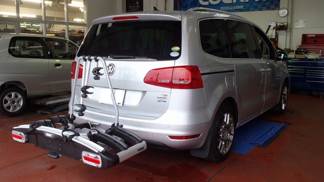 2014年7月4日 ツイート スーリー サイクルキャリアを、フォルクスワーゲン シャランへ取付させて頂きました。 キャリアを付けたままトランクを開閉できるトウバーマウントタイプにてのお取付作業でしたので 配線接続によりランプ類も作動するように取付です。なんと3台も運べてしまいます。車内は無論、いつも通りです。。 Prev Next