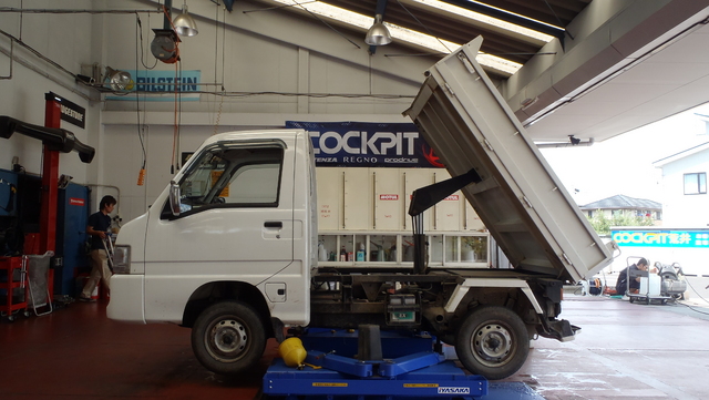 色々と当店にてメンテナンスしております ダンプカー スバルサンバーの