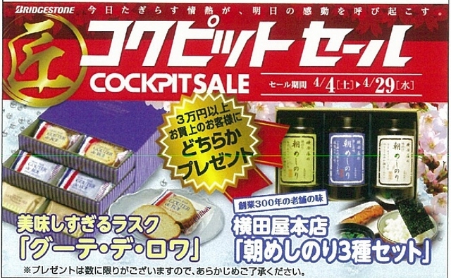 皆さま、タイヤは コクピット荒井で、購入、お取付がお得です!!