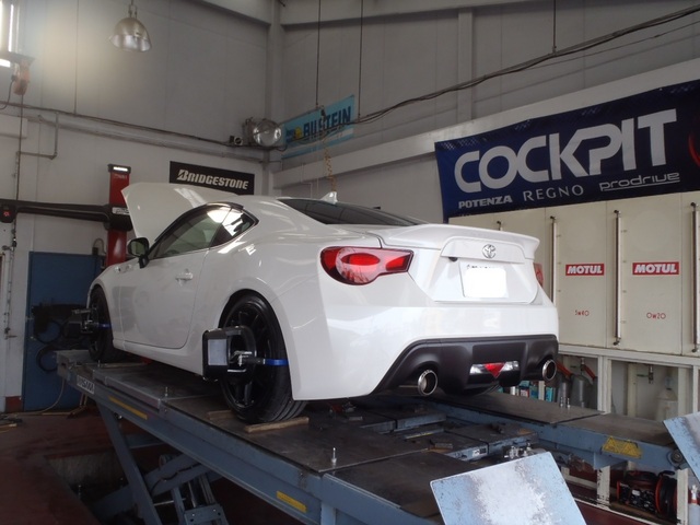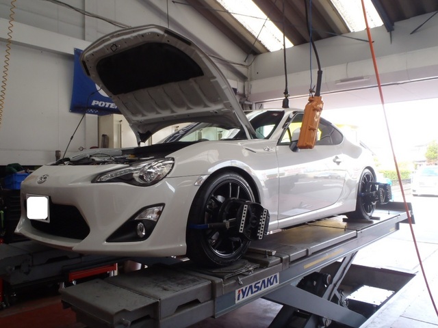 本日、車高調整とホイールを取付け、4輪アライメント調整に