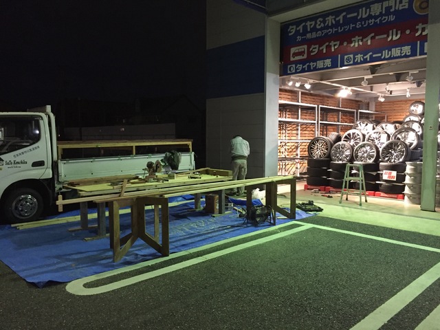 本日より、タイヤ&ホイール館 コーナーのリニューアル工事が始まりました。