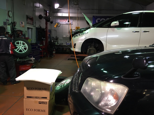 本日もタイヤ交換と車検整備で工場は終始満車でした。