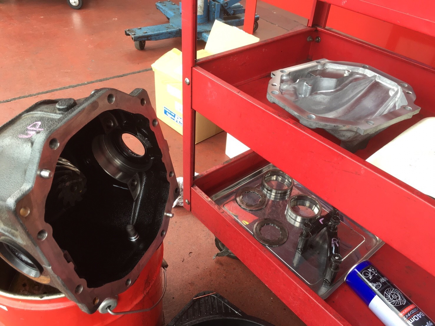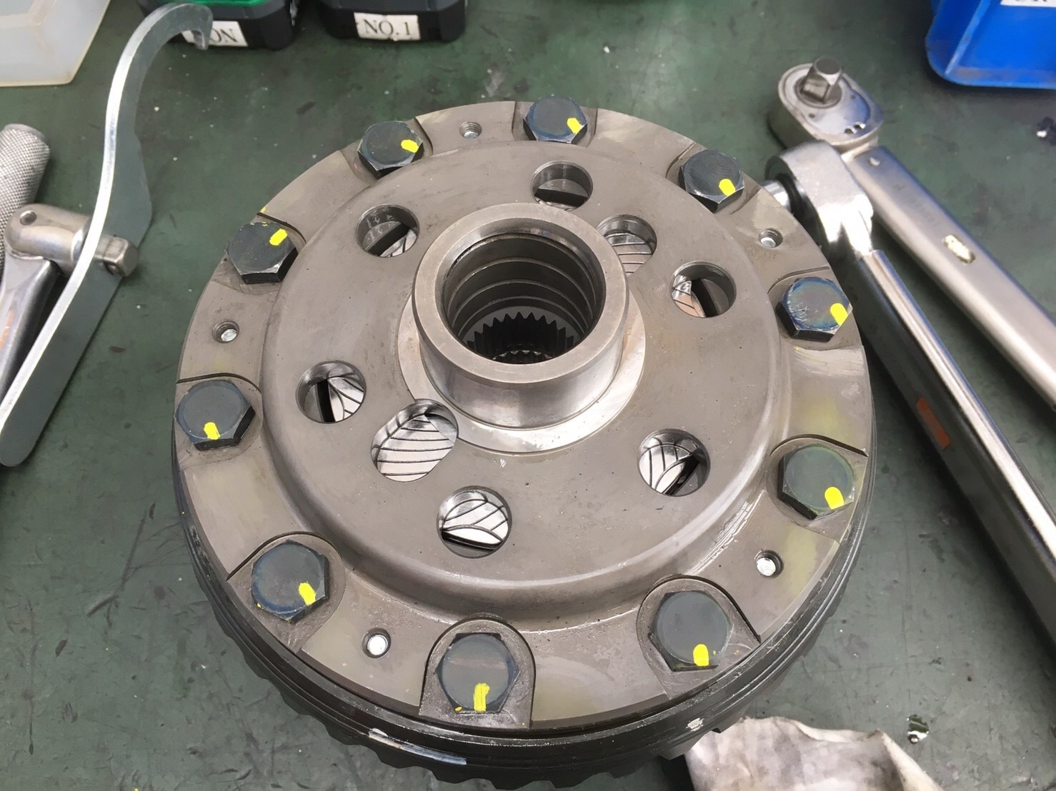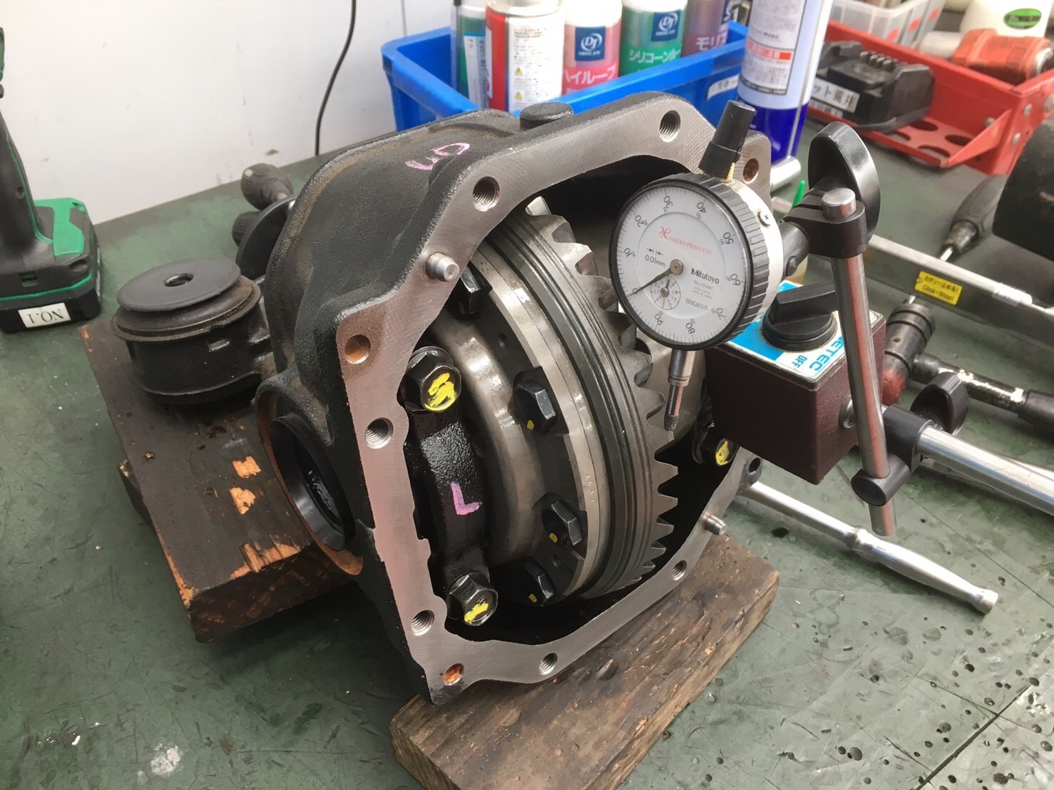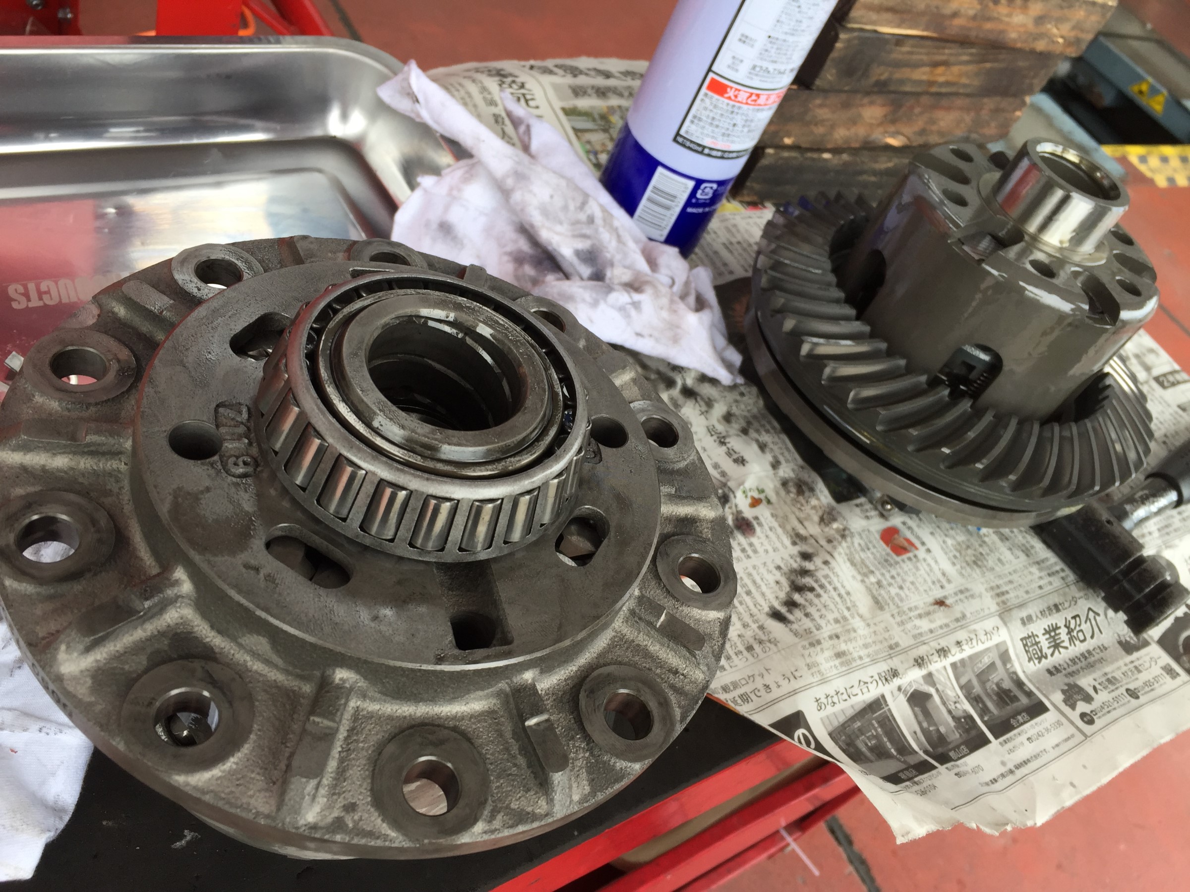 左が純正ディファレンシャル、右がCUSCO LSDです!丁寧に分解し、リングギアを組み込んでいきます!