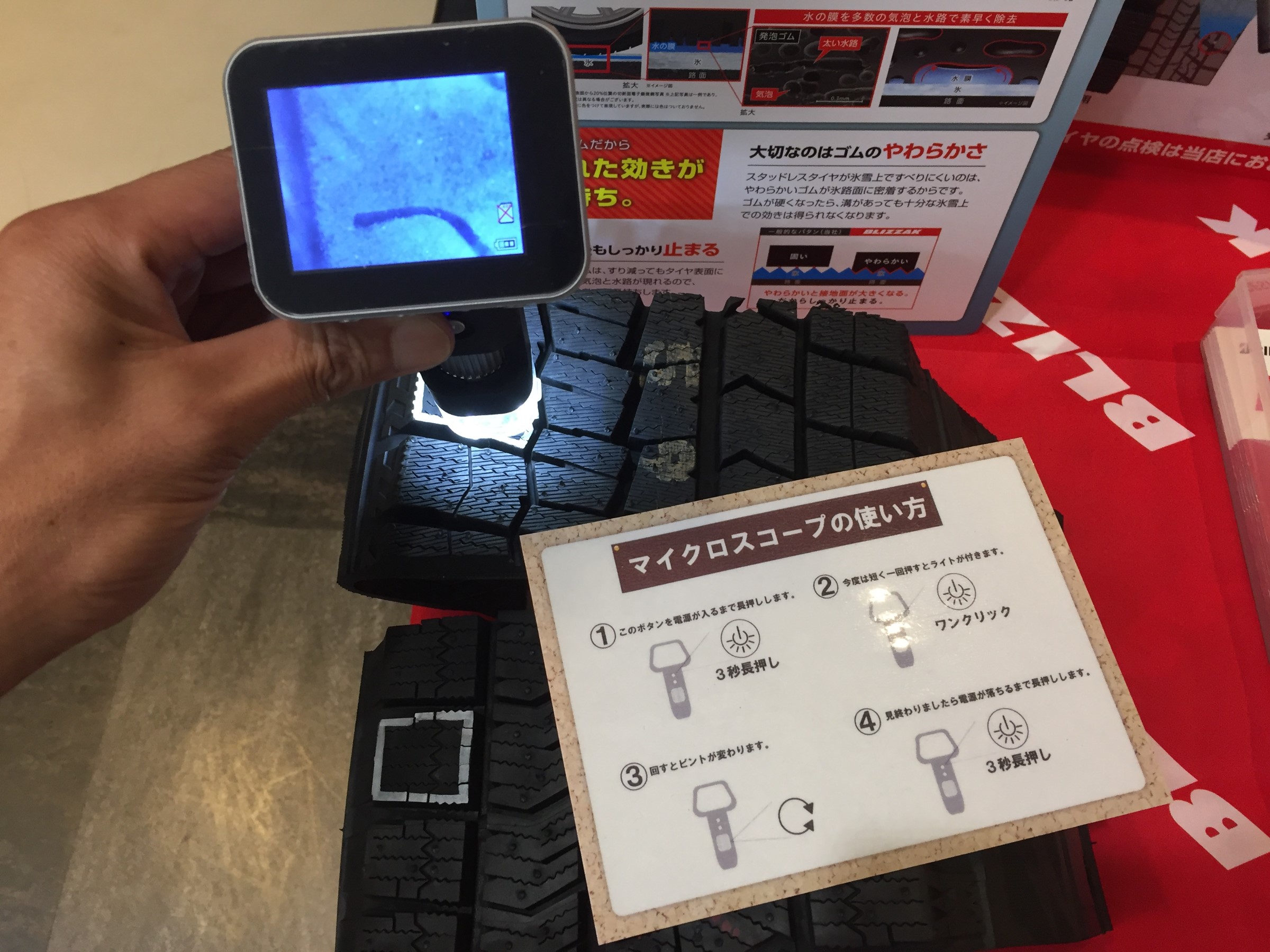 『 マイクロスコープ 』でタイヤ(カットサンプル)を見てみると、どんな感じか見てみましょう('ω')