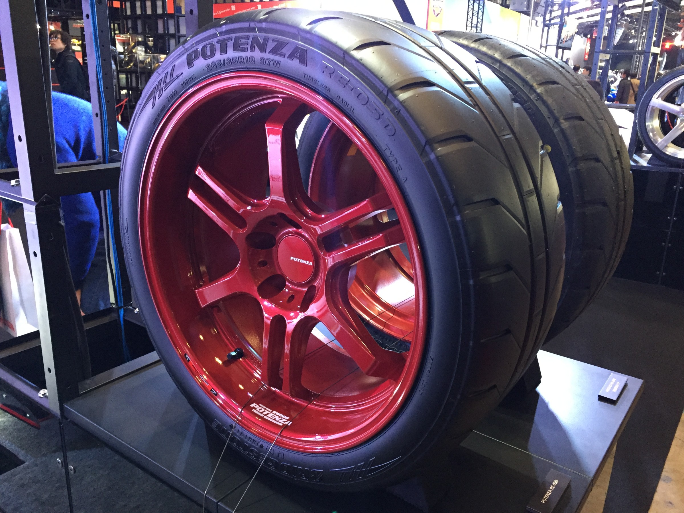 今年は3台がブリヂストンブースに展示されてました。ポテンザがカッコよく装着されています。