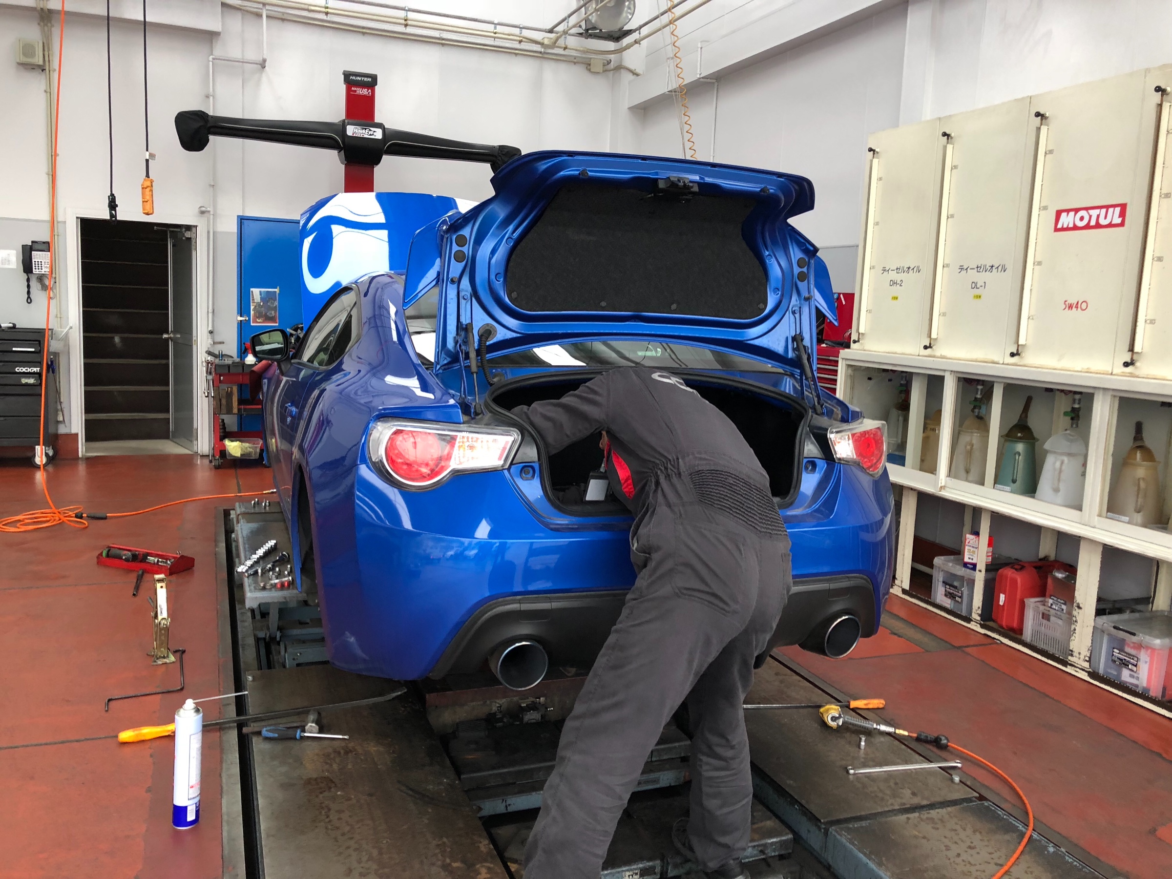 先日、SUBARU BRZの足回りのガタ点検にてご来店頂きましたお客様。しかもわざわざ遠方から!!ありがとうございます!診断結果は車高調キットのショックガタでした。。