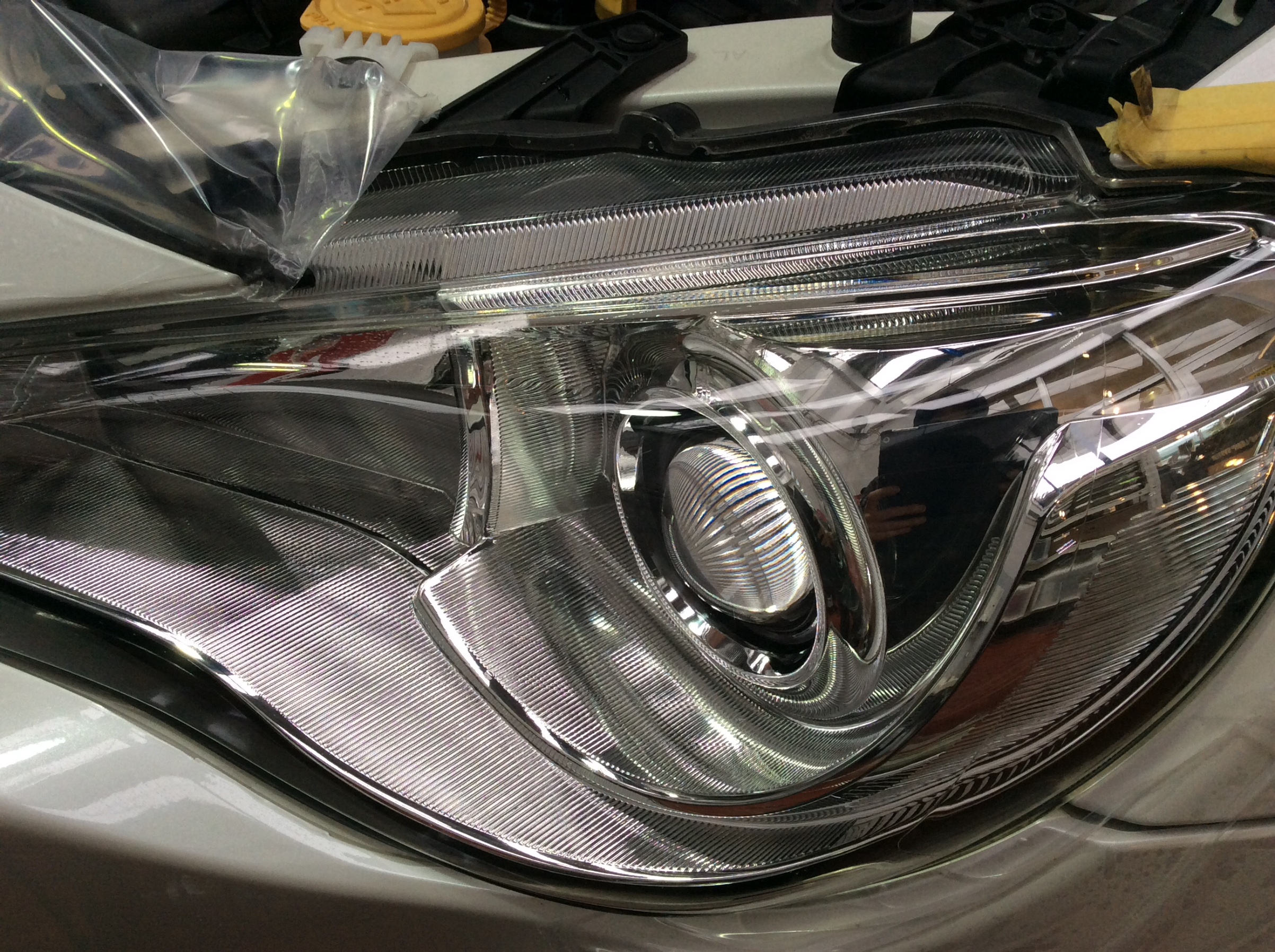 今のヘッドライトのほとんどがプラスチック製。