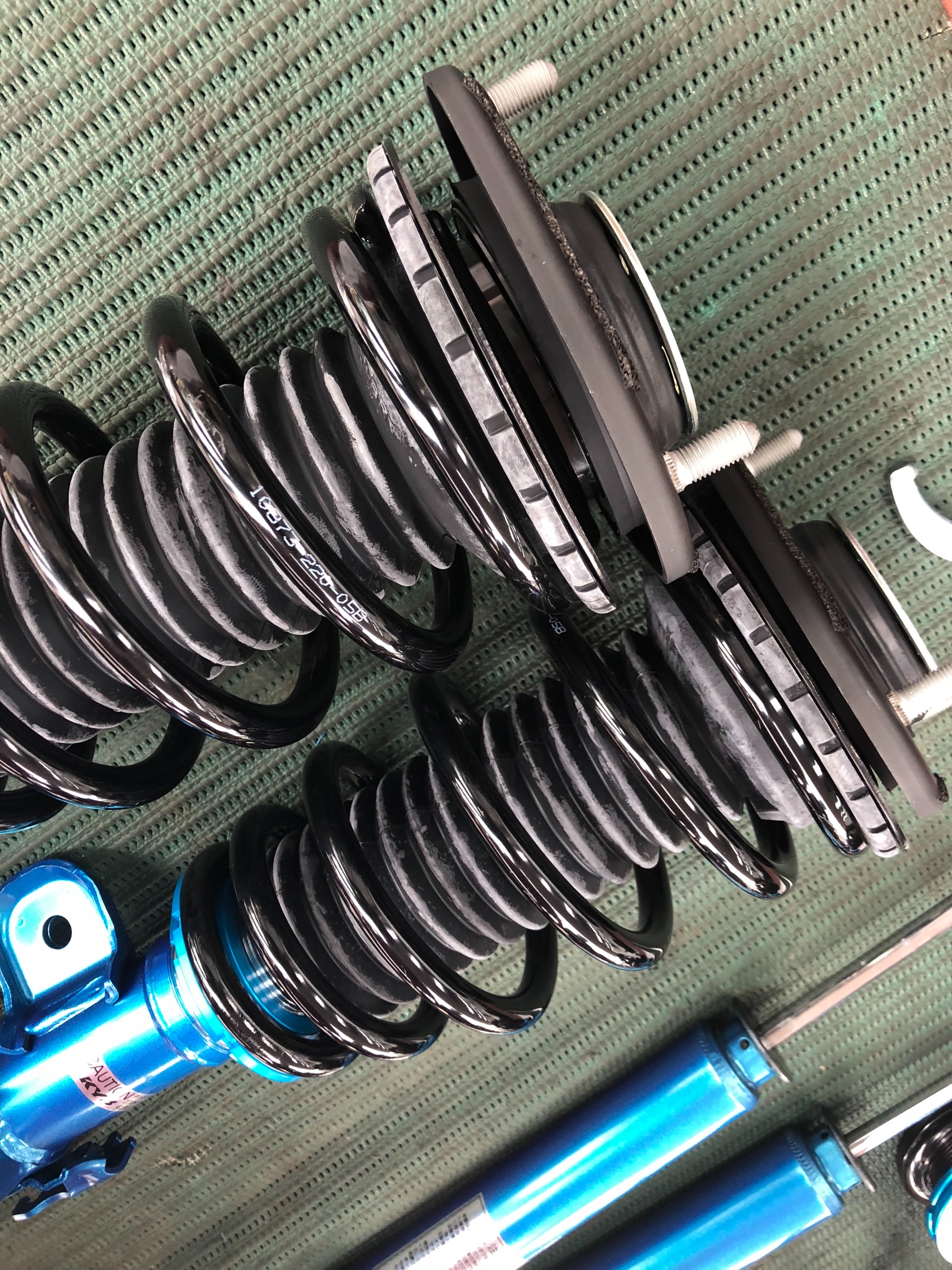 アッパーマウントなど劣化して走行性能を悪くしたり、音の原因になりそうな部品は、あらかじめ純正品を準備して組み立てます(o^^o)