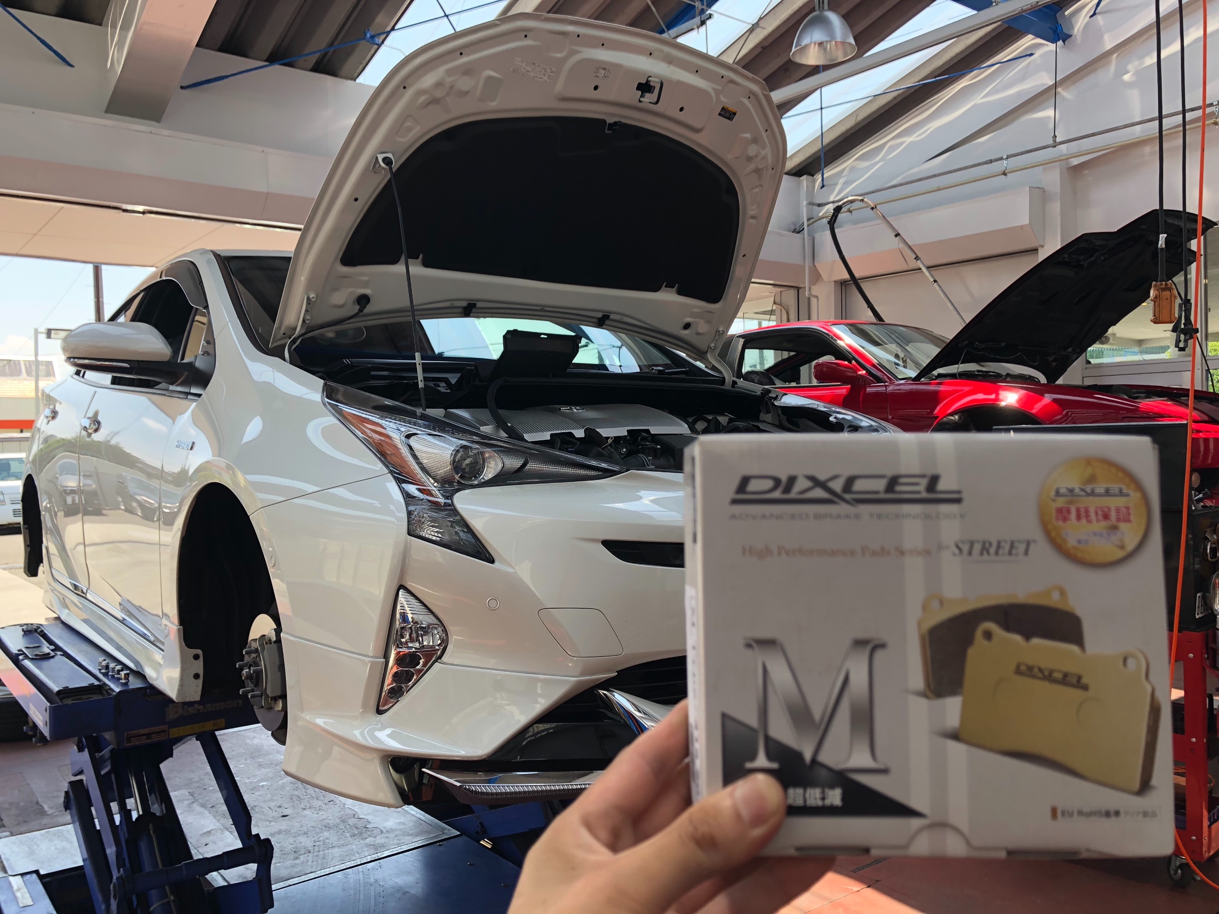 新型プリウス Mタイプ パッド交換 素敵なwheelも汚しません!