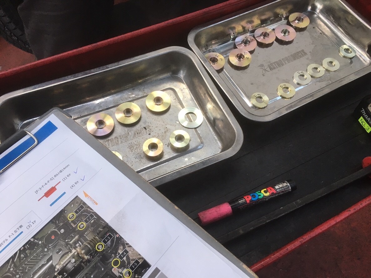 最後の仕上げはやっぱり『 アライメント調整 』!! いつも美味しい差し入れありがとうございま〜すꉂꉂ ( ˆᴗˆ )
