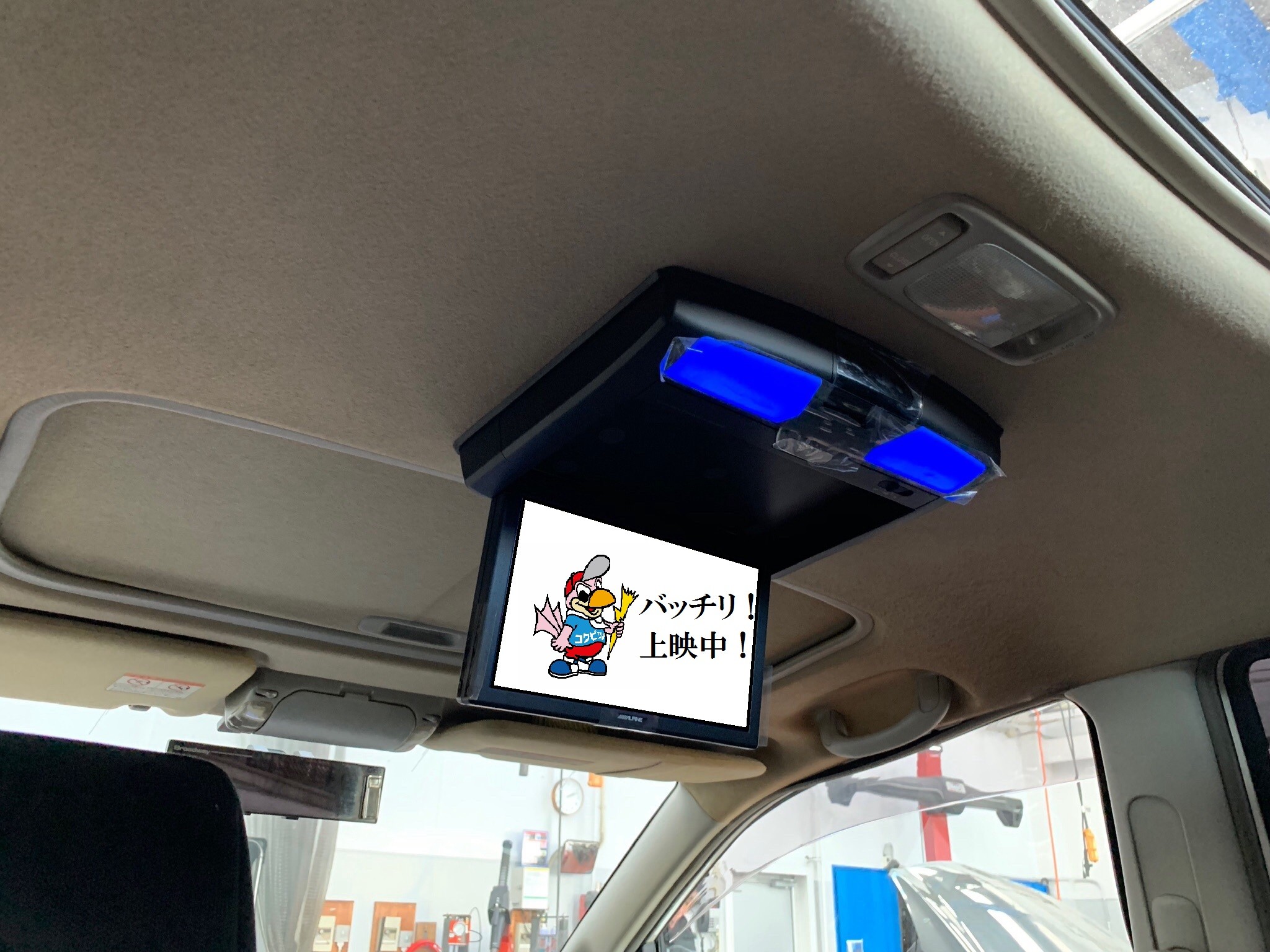 今回はサンルーフ車にフリップダウンモニターを取り付けさせて頂きました!