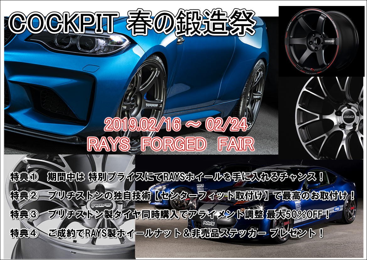 春の鍛造祭 第三弾 『 RAYS WHEEL 』フェアも始まりましたよ⸜(๑⃙⃘'8'๑⃙⃘)⸝