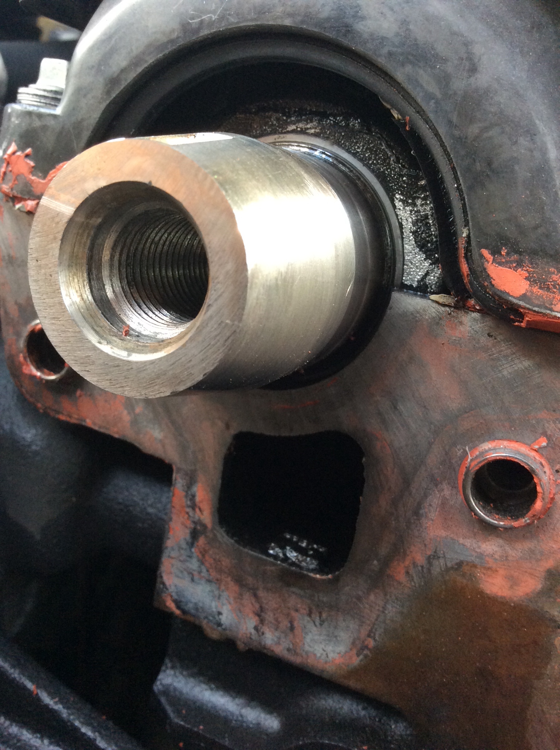 ここは、カムシャフト裏(ヘッド部)からのブローバイを通す通路です。