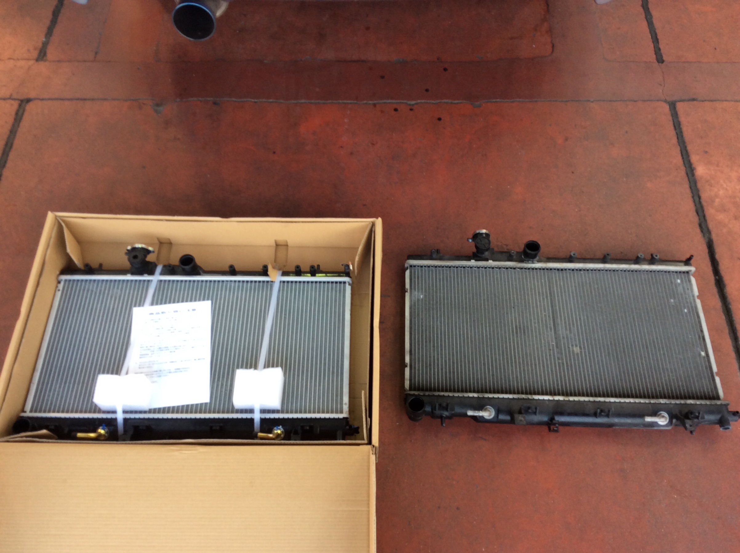 今回、ラヂエータの修理を受けたのですが、新品と価格があまり変わらないパターンでしたので、新品に交換します。