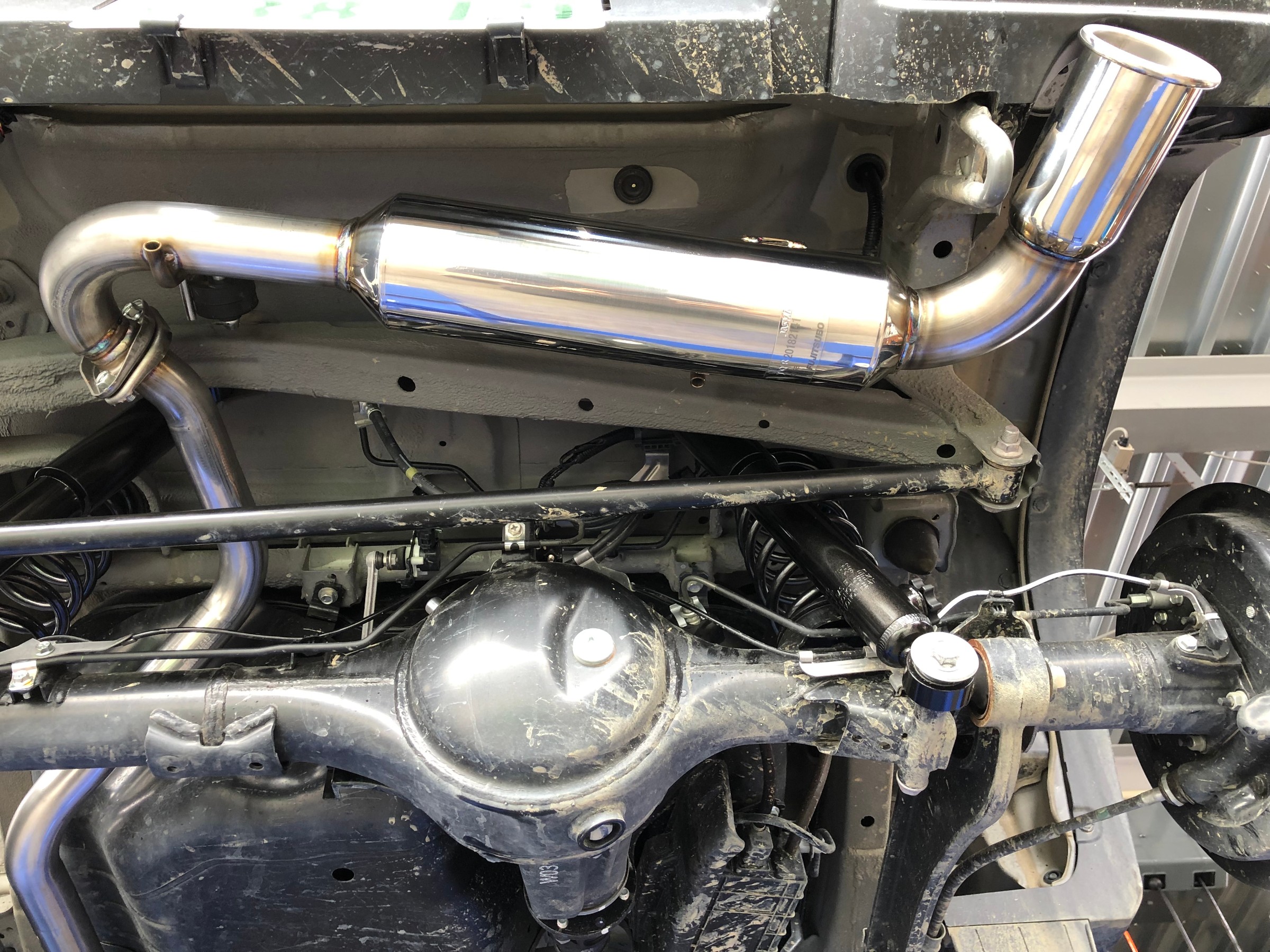 足回り作業が終了し、続いてマフラー交換です!