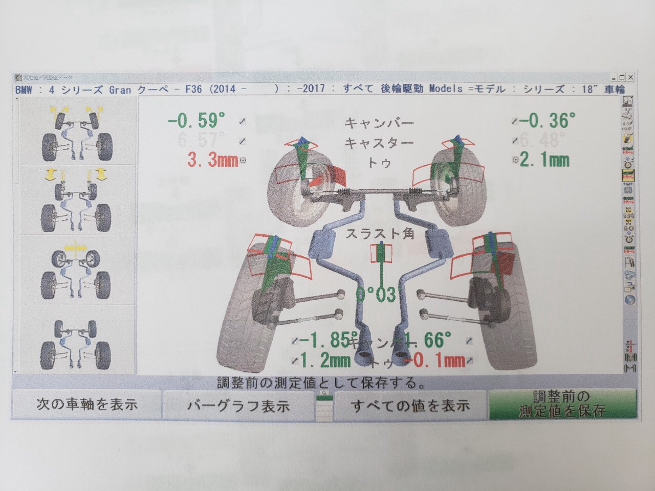 昨日に続き、F36、アライメント調整のご依頼頂きました。