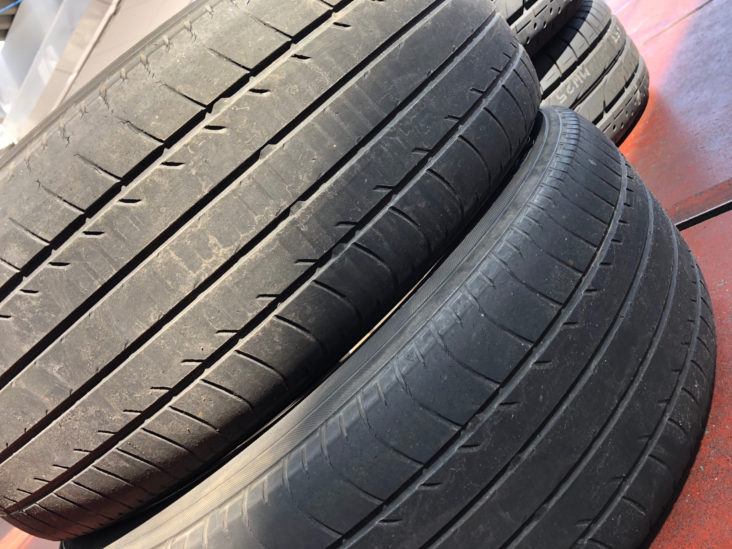 純正タイヤは経年劣化ヒビと残量も少なくちょうど良い交換時期でした!