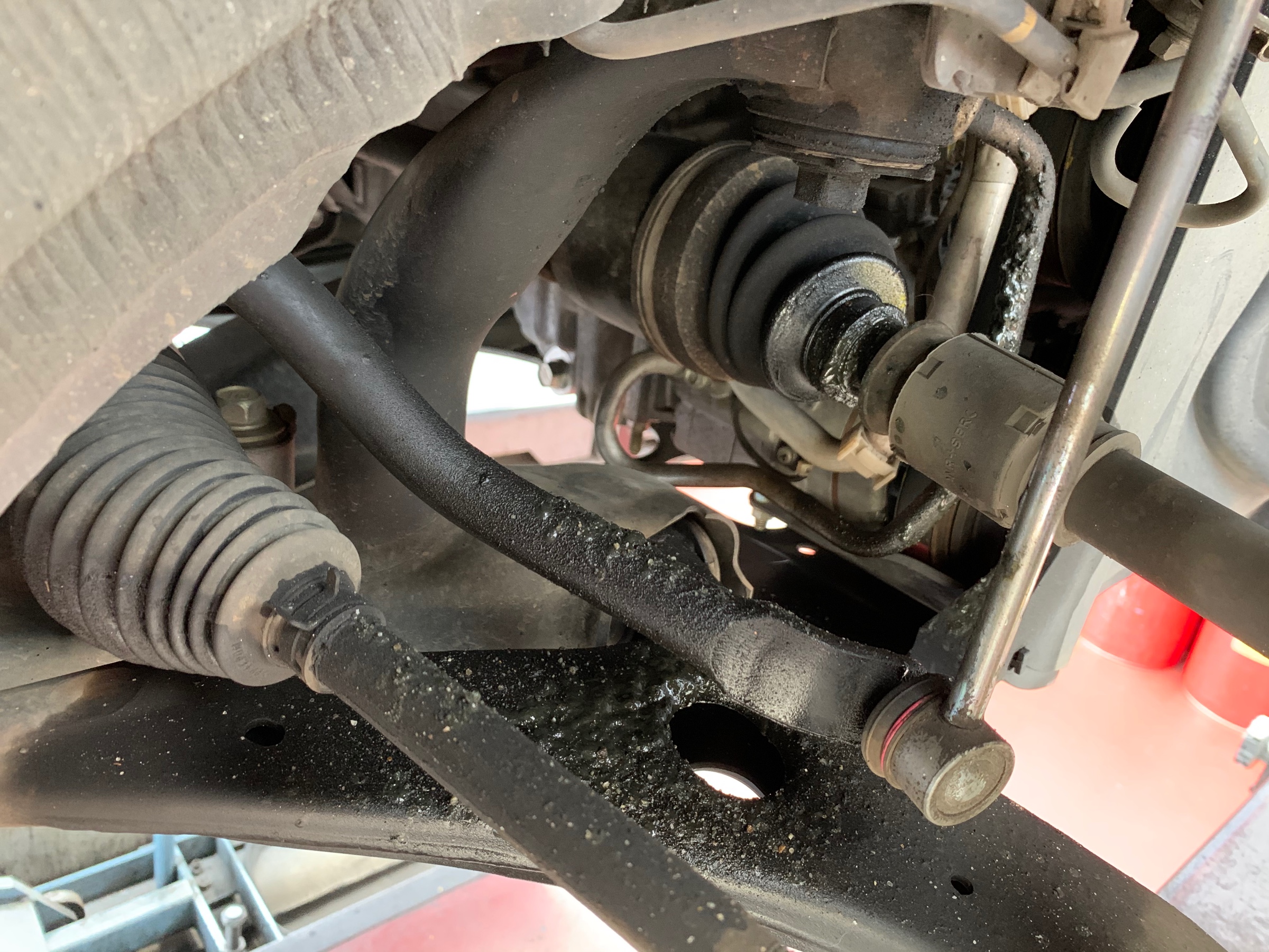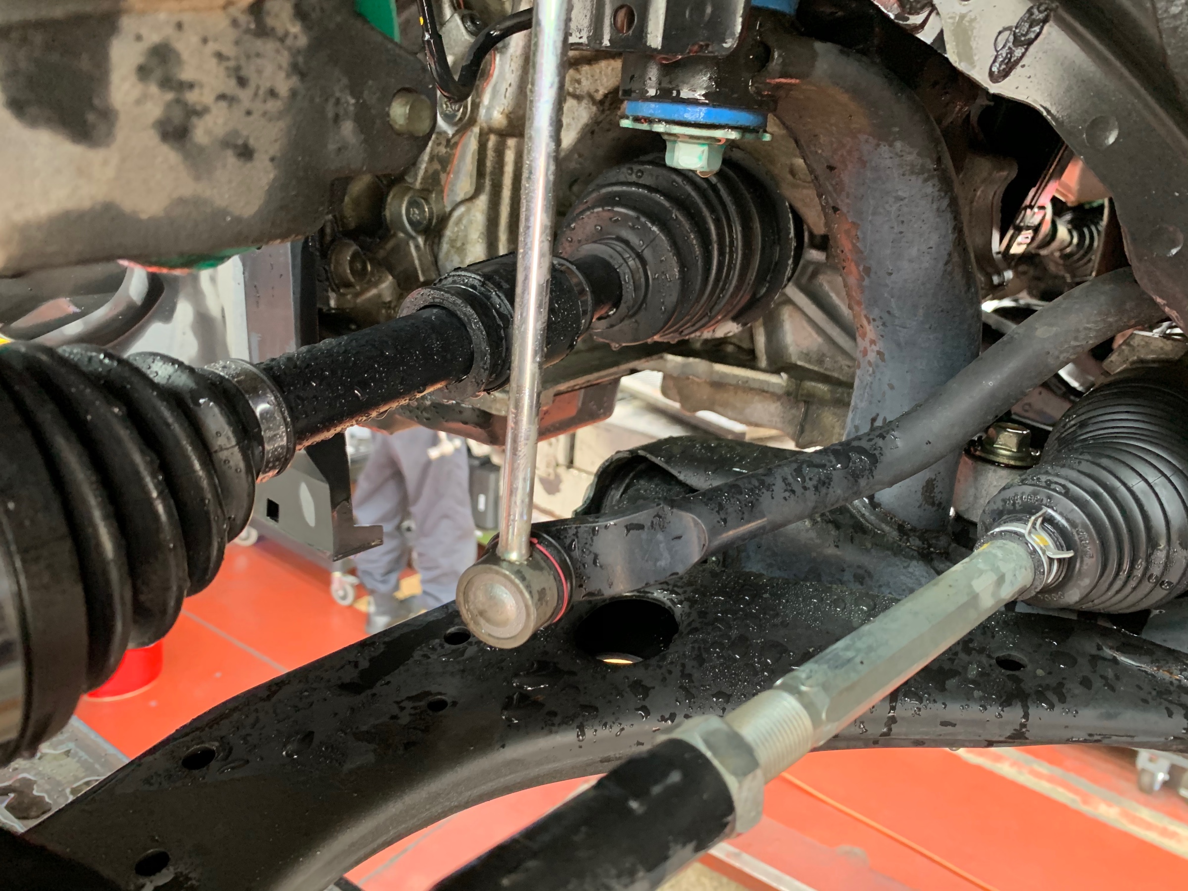 フロントのドラシャブーツの切れによる修理入庫です!
