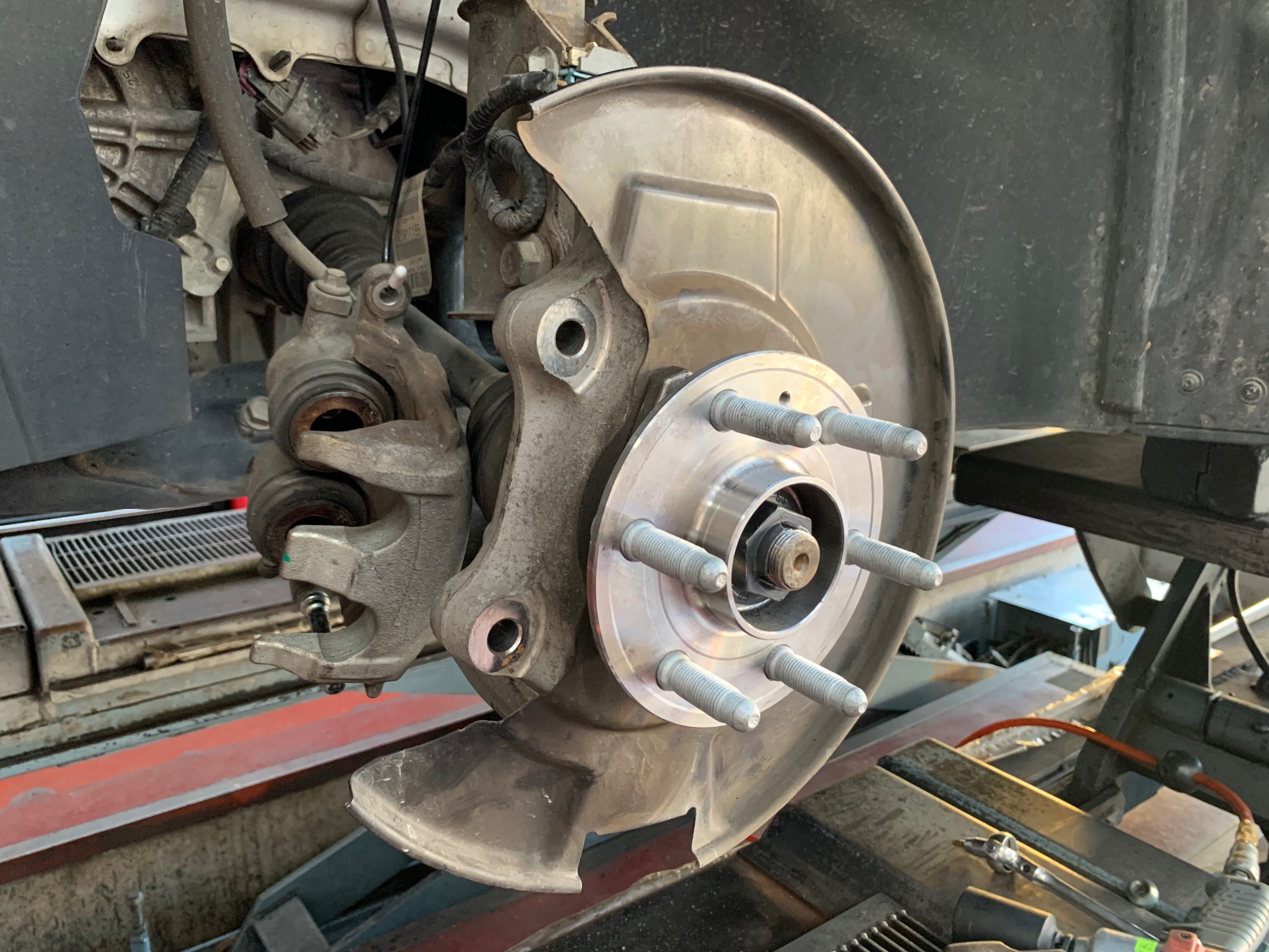 フロントのハブベアリング左右交換になります。