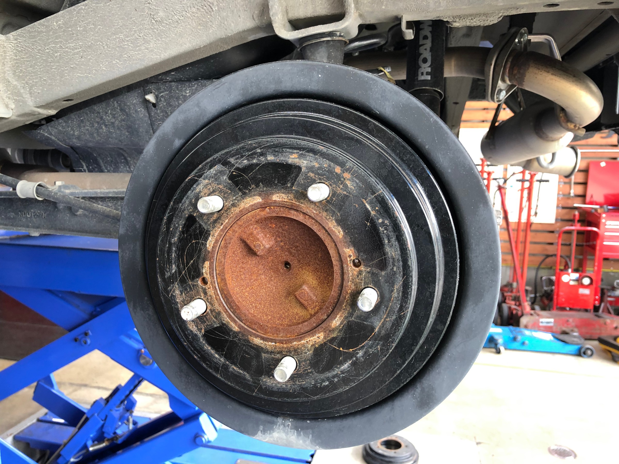 リアドラムブレーキは純正を取り外し、アルフィンドラムと交換。