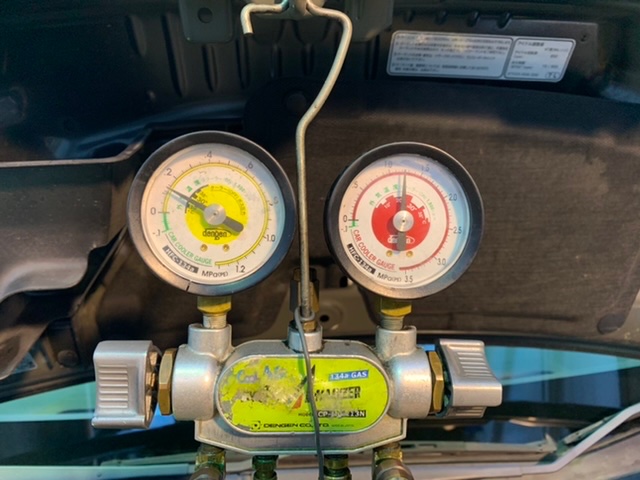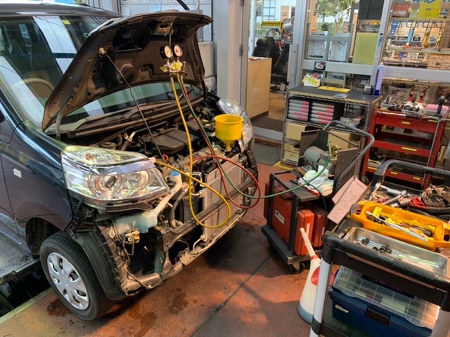 エアコンガスを回収して、クーラントを抜き