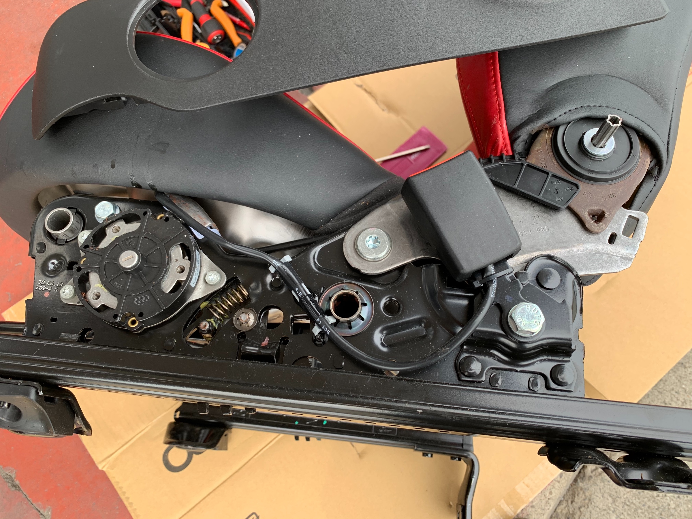 外したらシートベルトのバックルをRECAROに移動します。