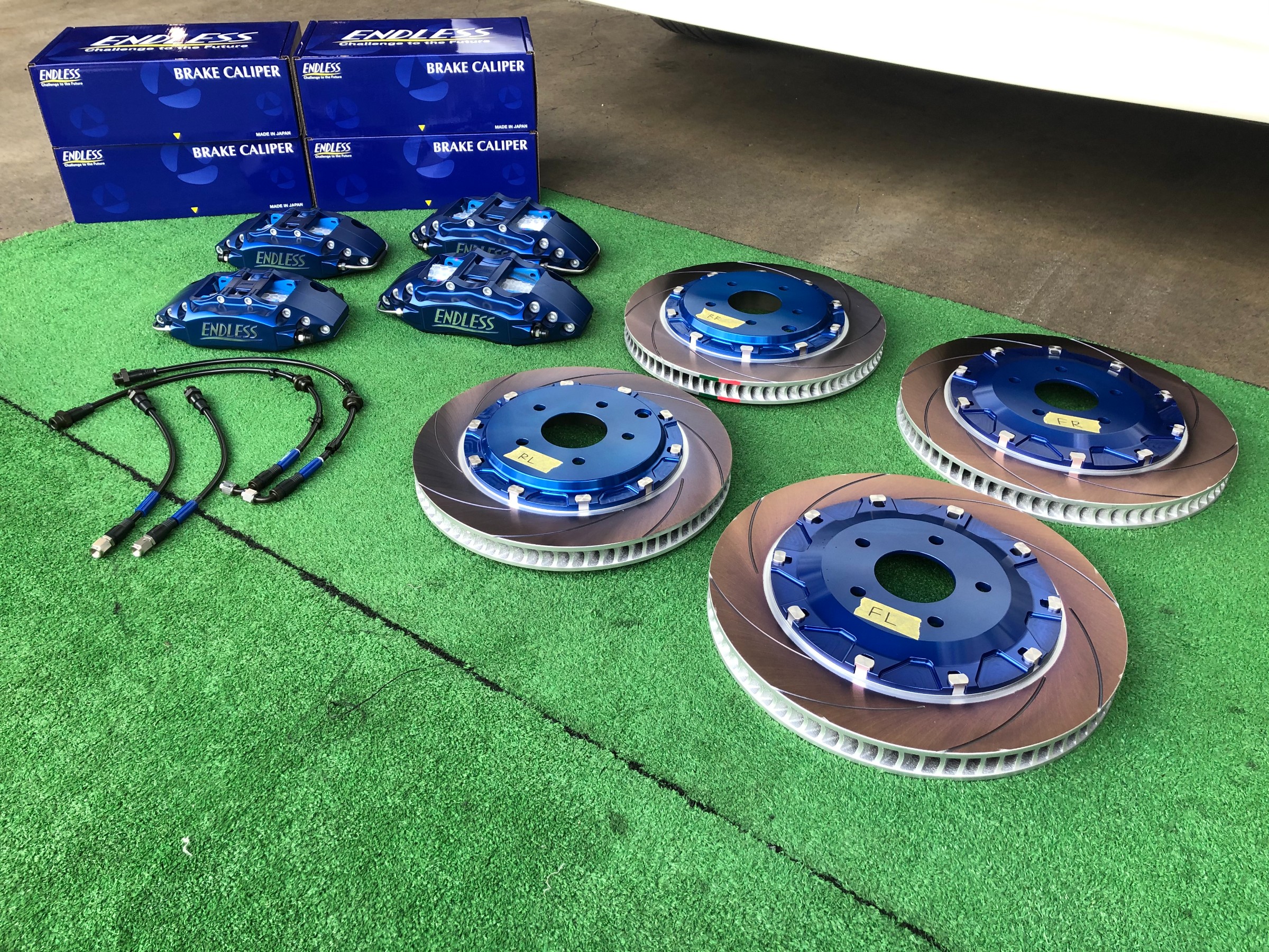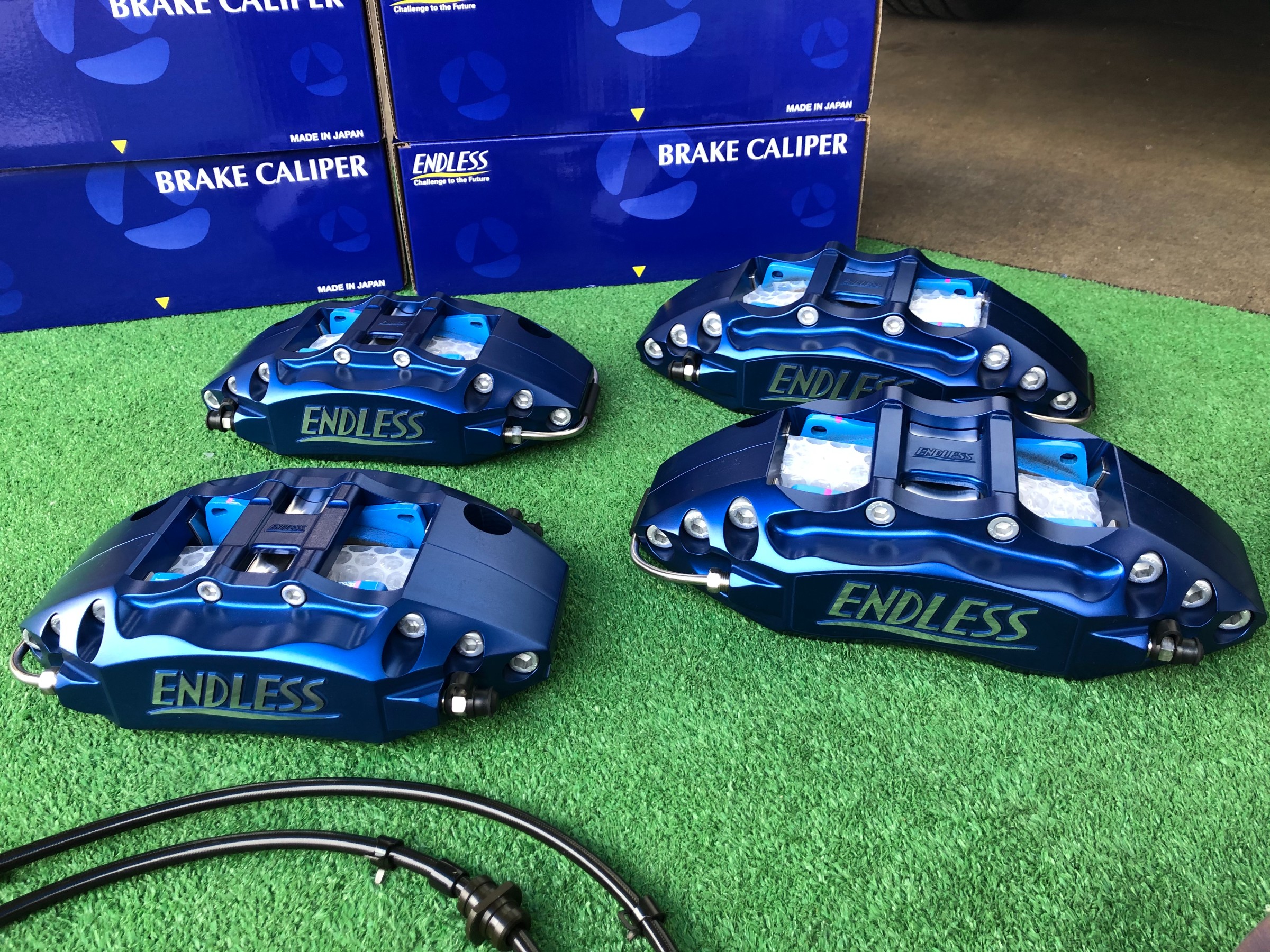 コチラに エンドレス チビ6ワゴン S4R の6POT 4POTのキャリパーを取り付けです!