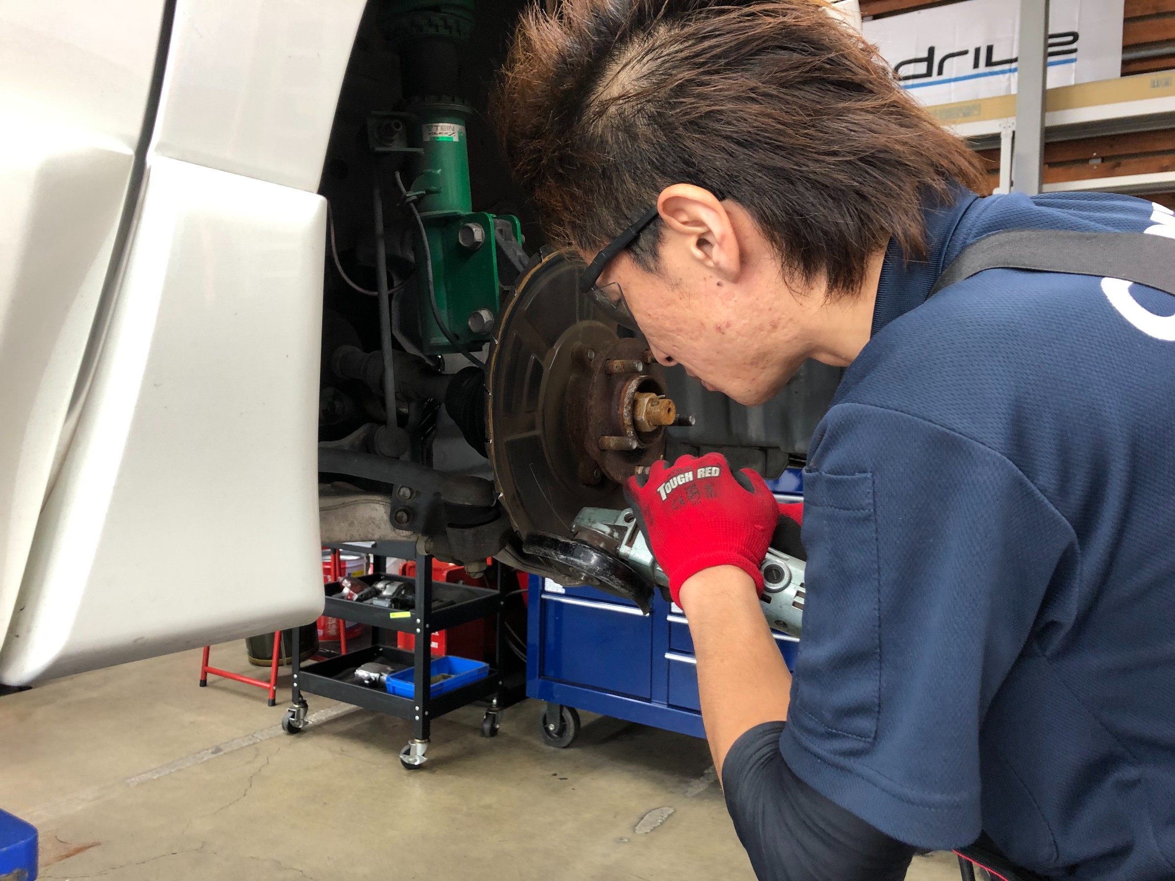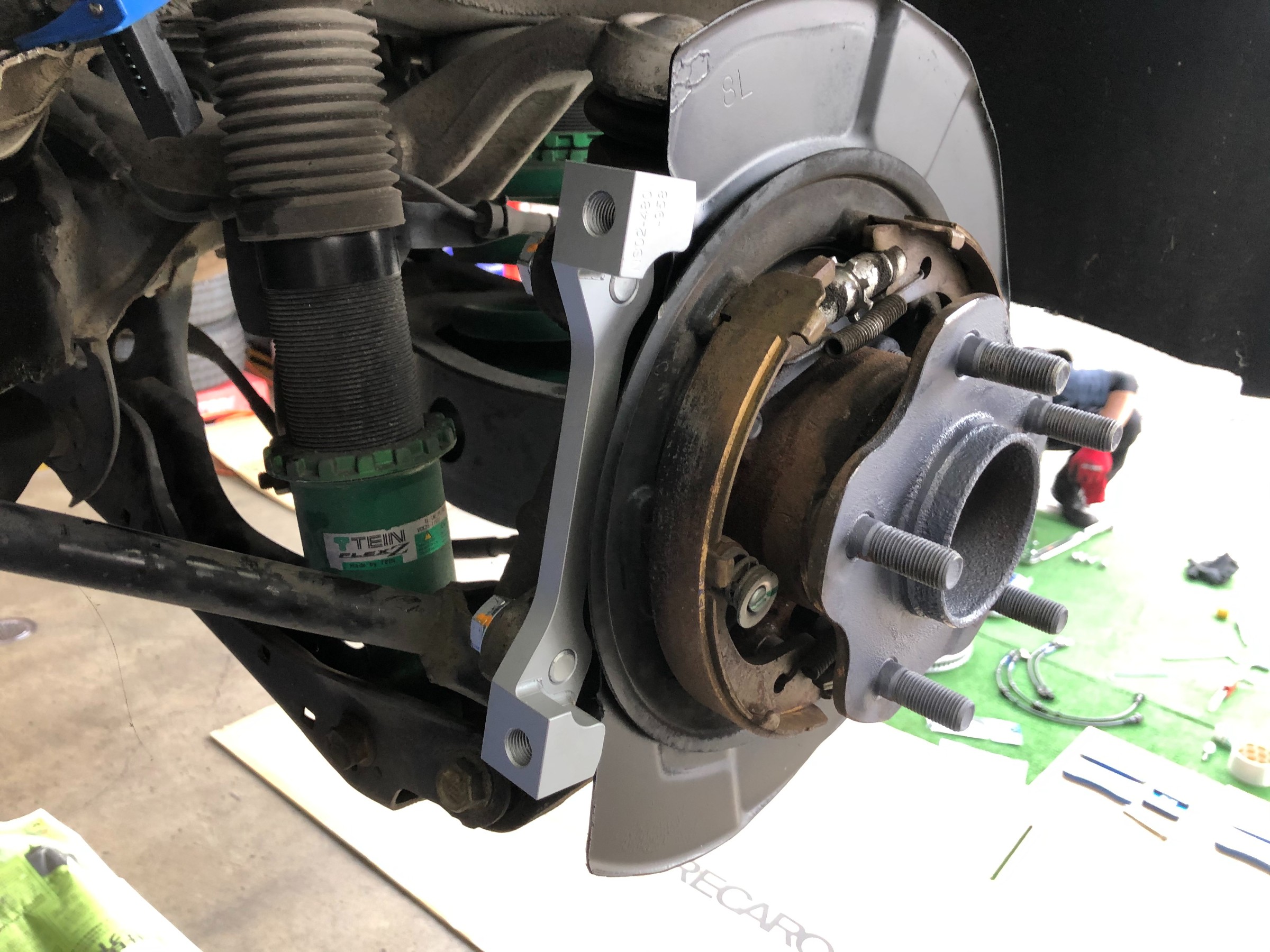 仮組みをし、最終確認後、締付け、ブレーキパッド、ブレーキホースの組付けを行います!