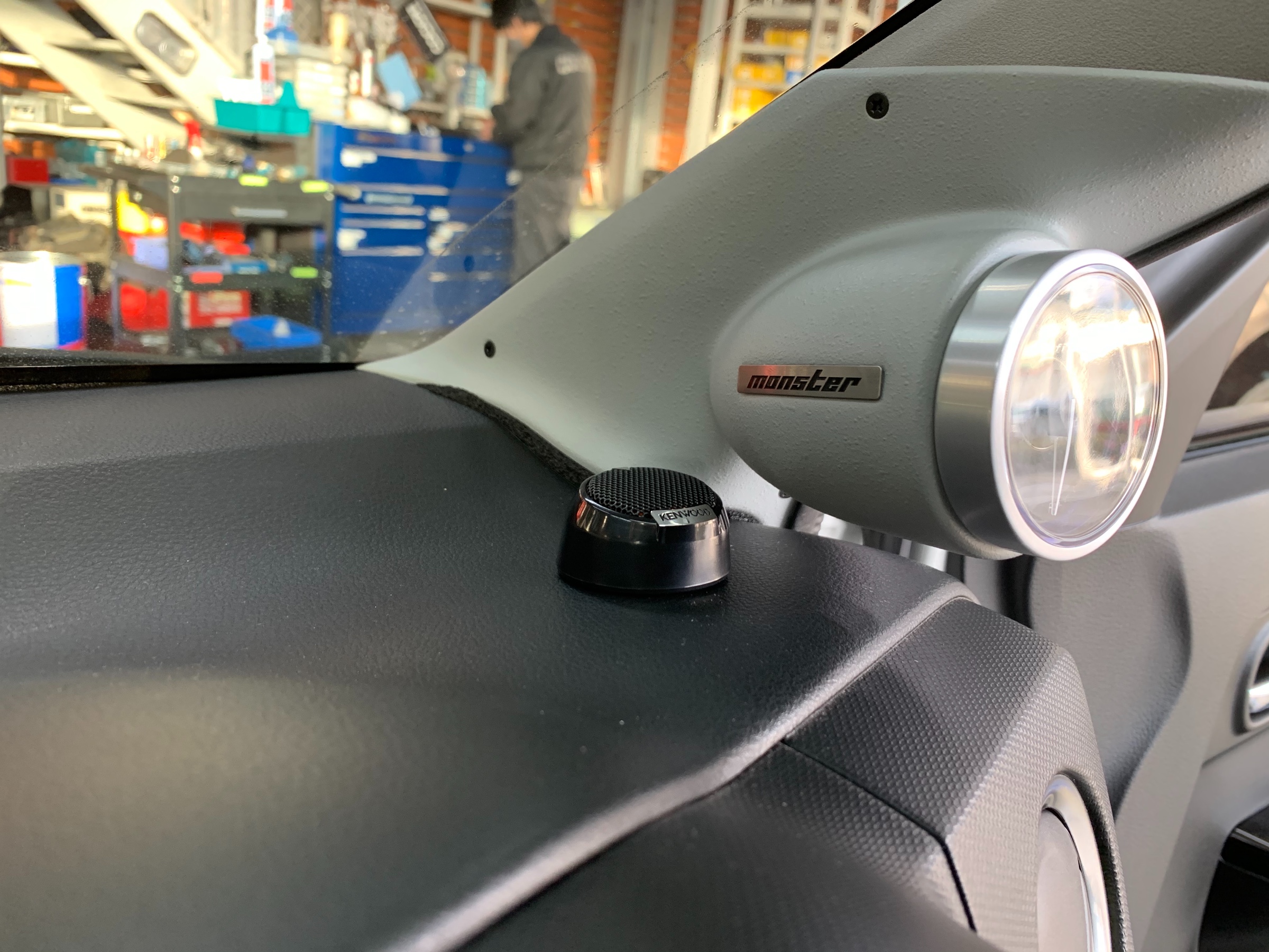 モンスタースポーツのピラーメーターフードとセットで取り付けます。