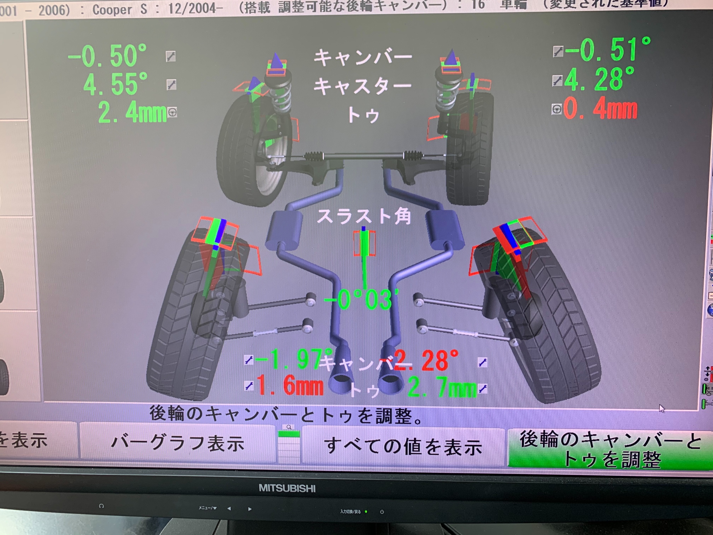 続きまして4輪アライメント調整になります。