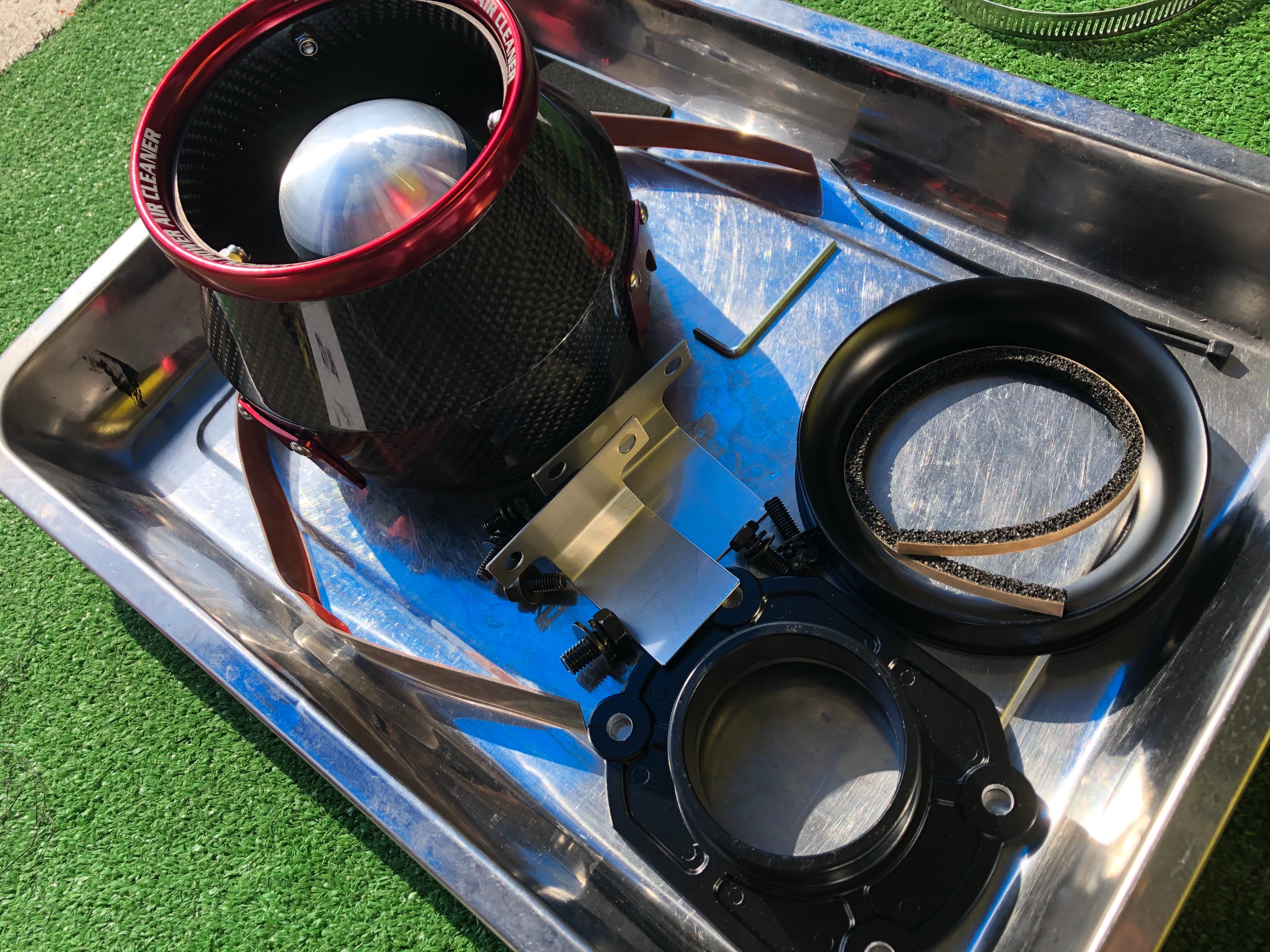最初にマフラーを交換する方も多いですが、次の一手として吸気パーツを交換するオーナー増えてます(・ω<)