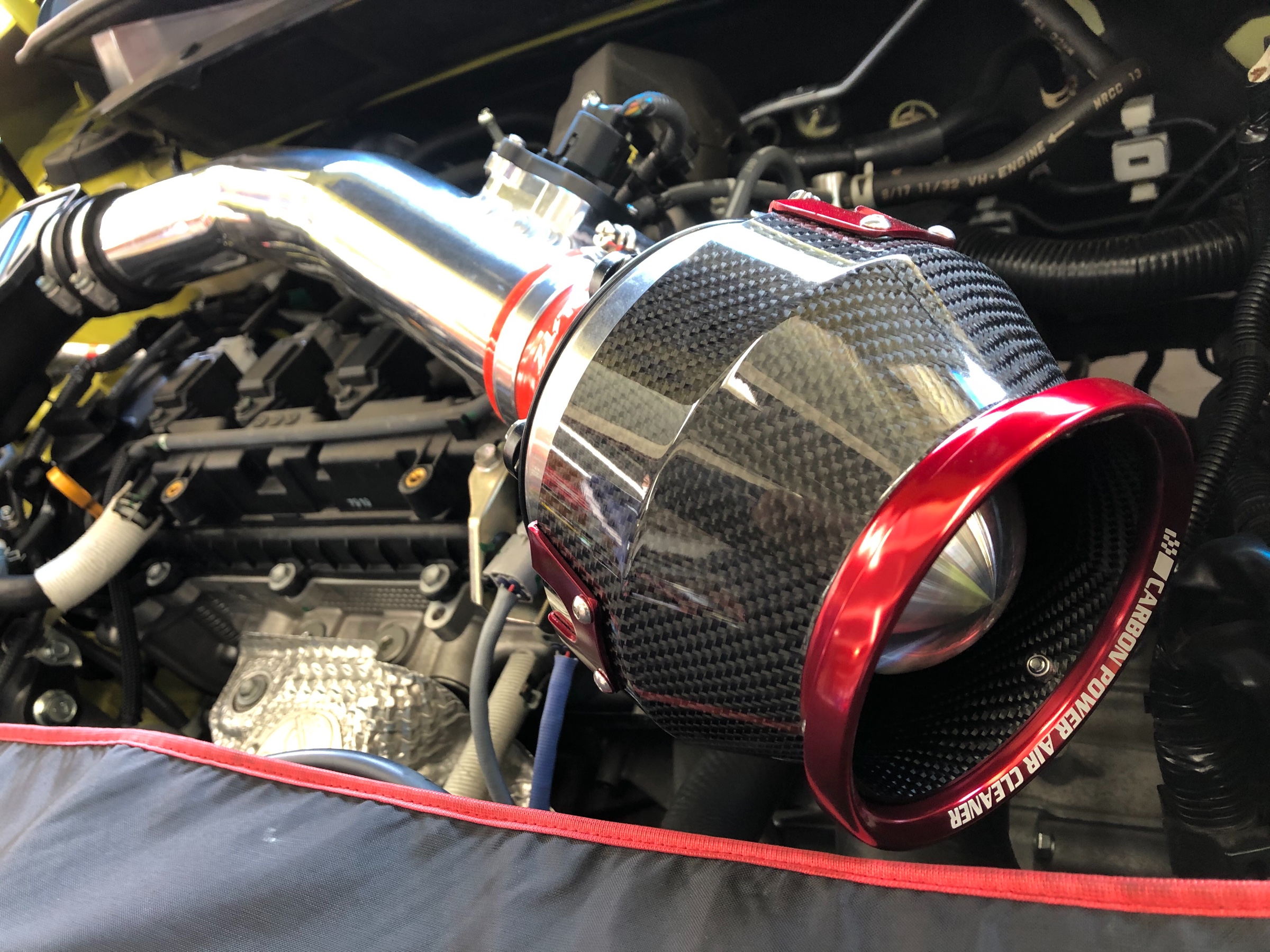 カーボン製のシールドにレッドリングのコンビネーション!!これはエンジンルームで《 映える 》事間違いなしです(*´˘`*)♡