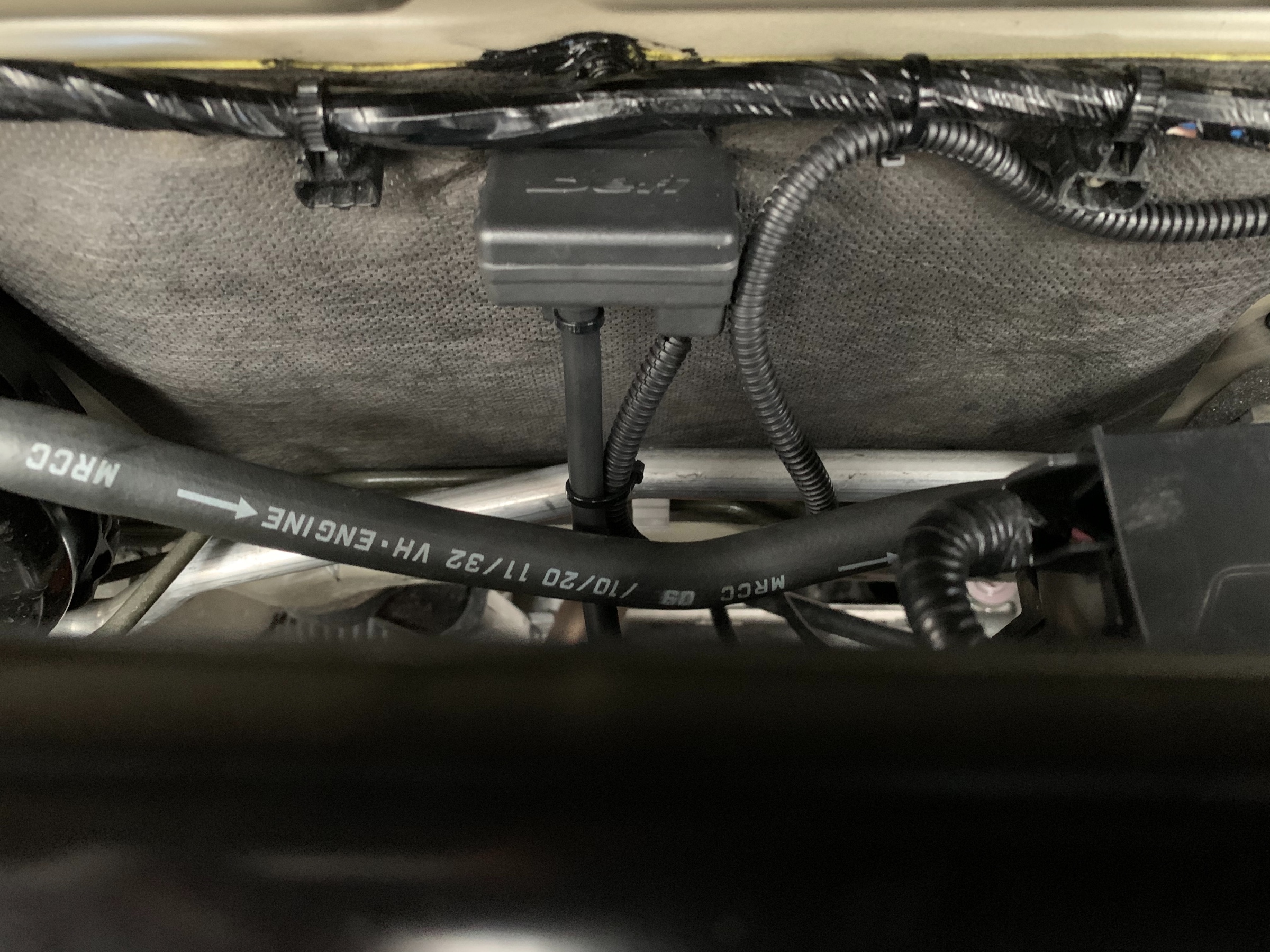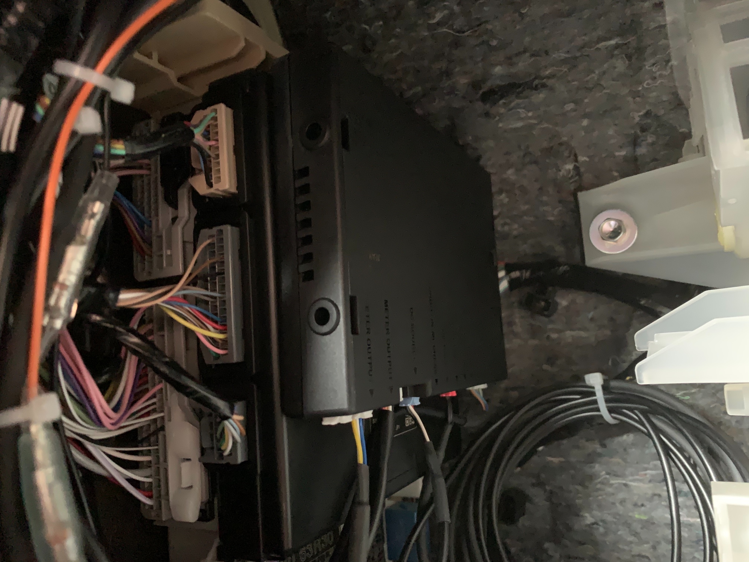 配線を、引き込んでユニットは助手席足元に取り付けました。