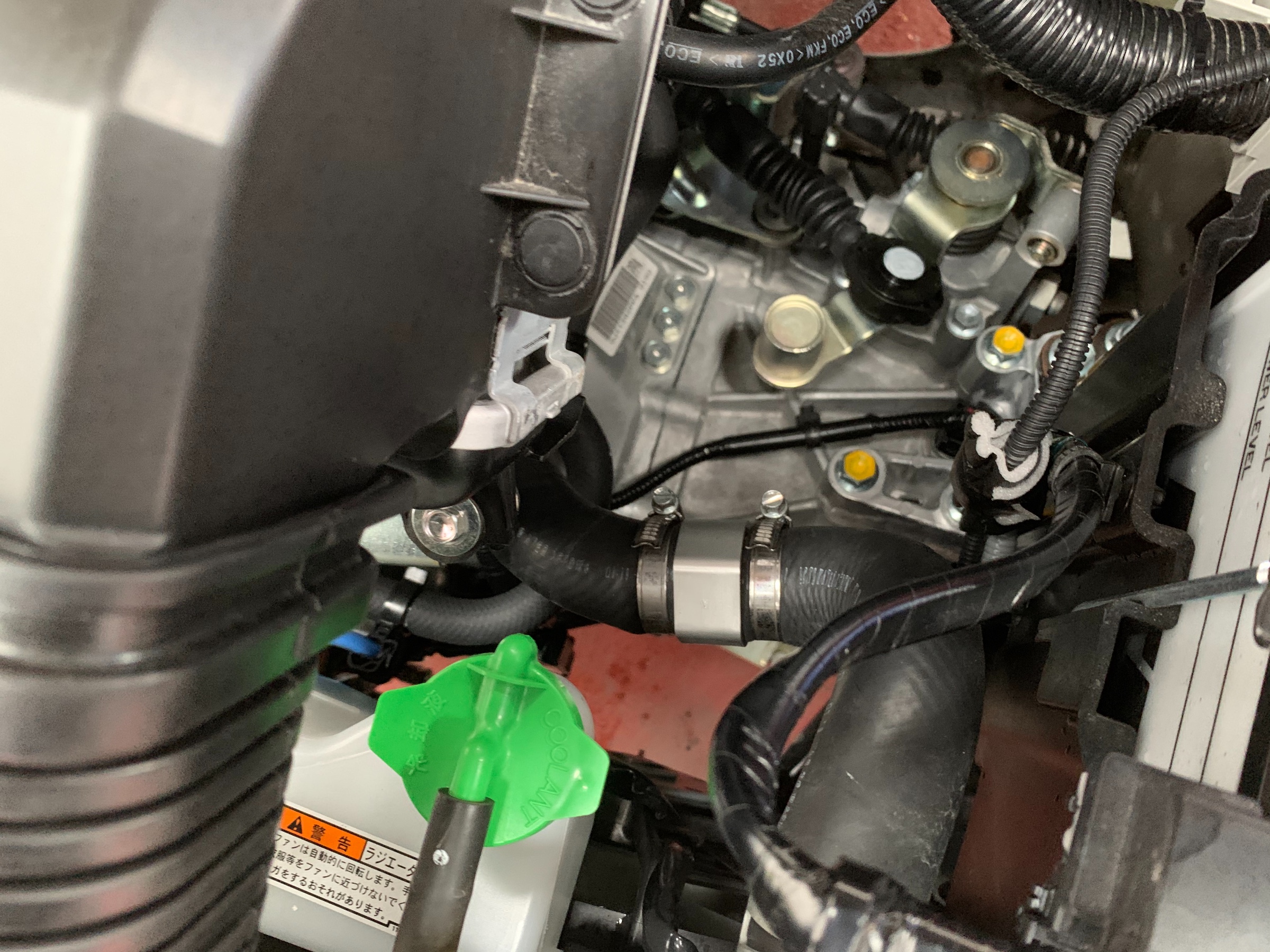 水温はセンサーはこのアッパーホースからとります。