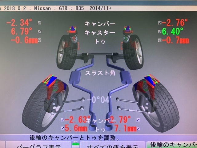 調整は前後のキャンバー、トーの調整に