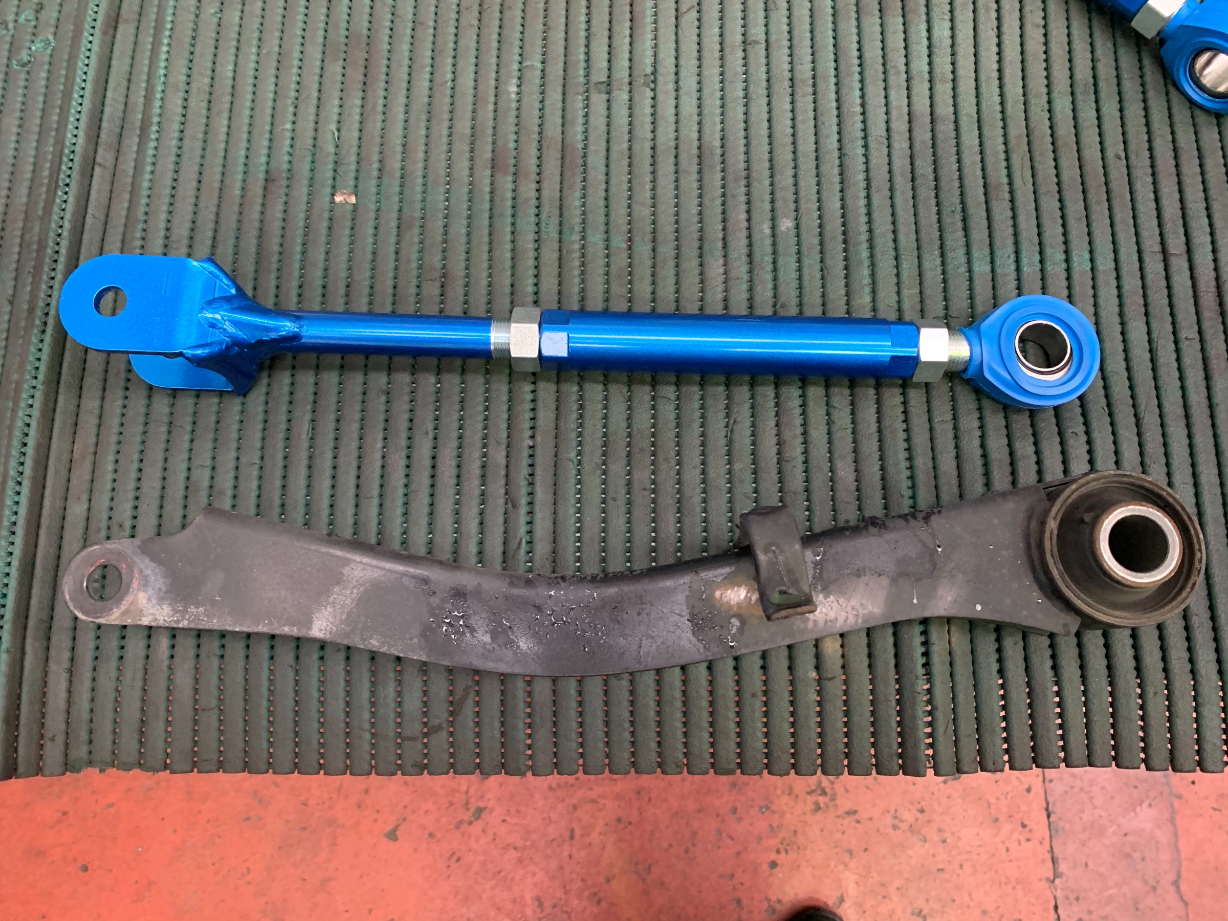 クスコさんのリアトレーリングロッド取り付けで御来店です。