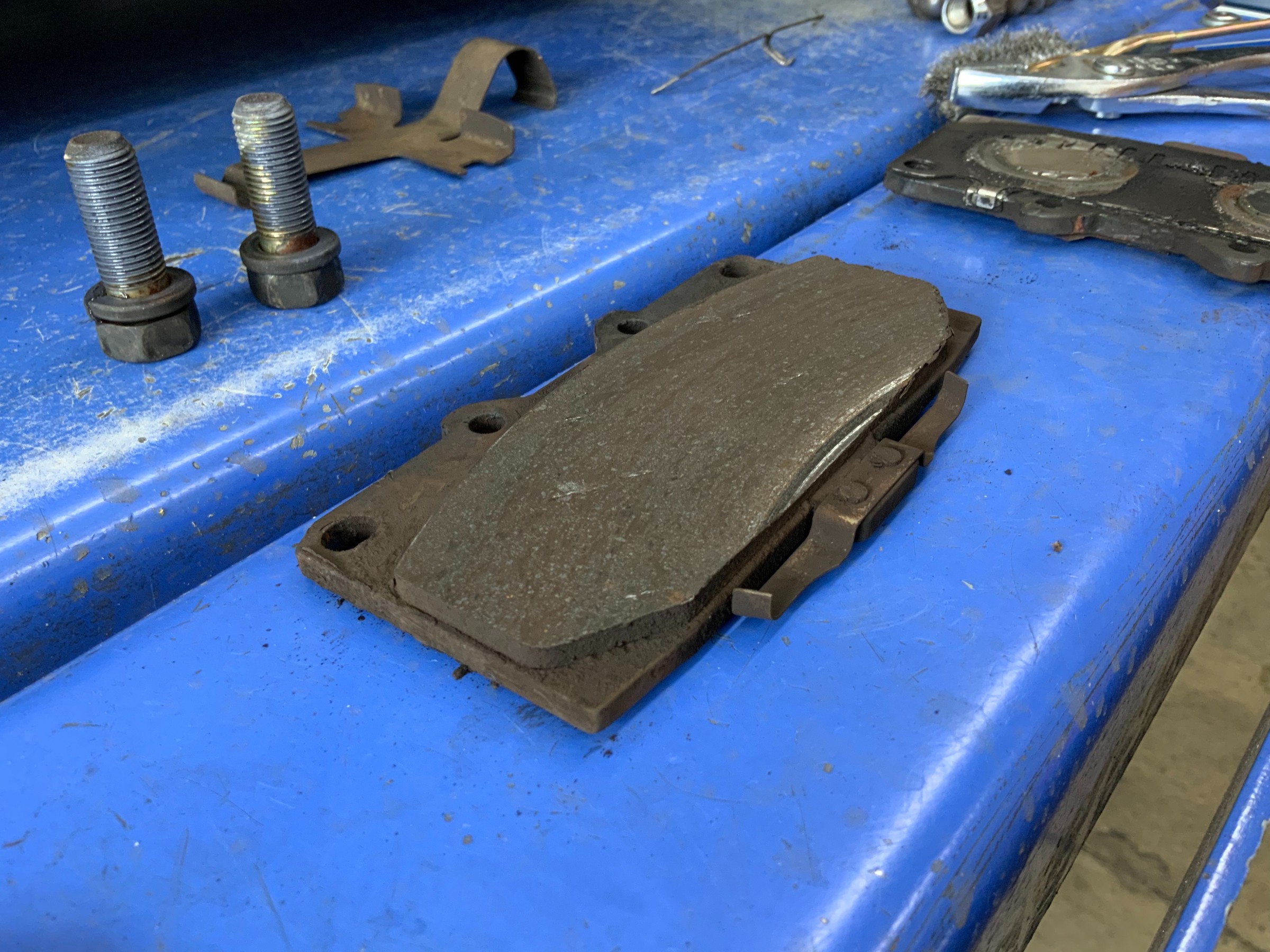 パッドはもう少しで減ったことを教えてくれる金具のところまで来ていますので、交換です!