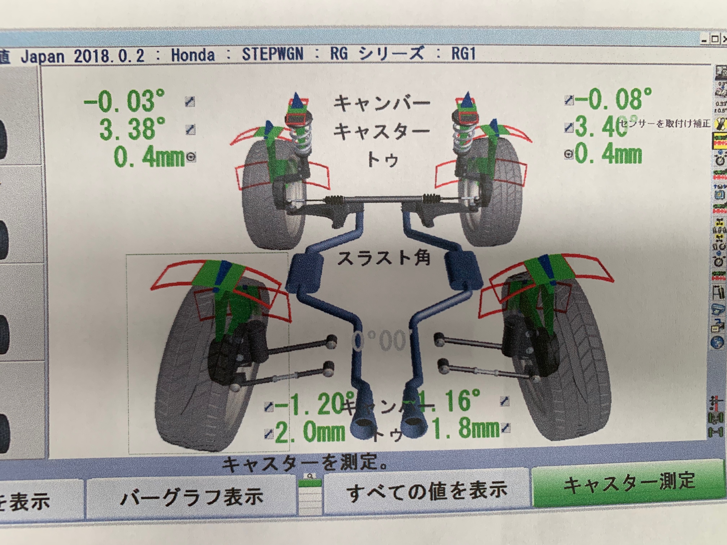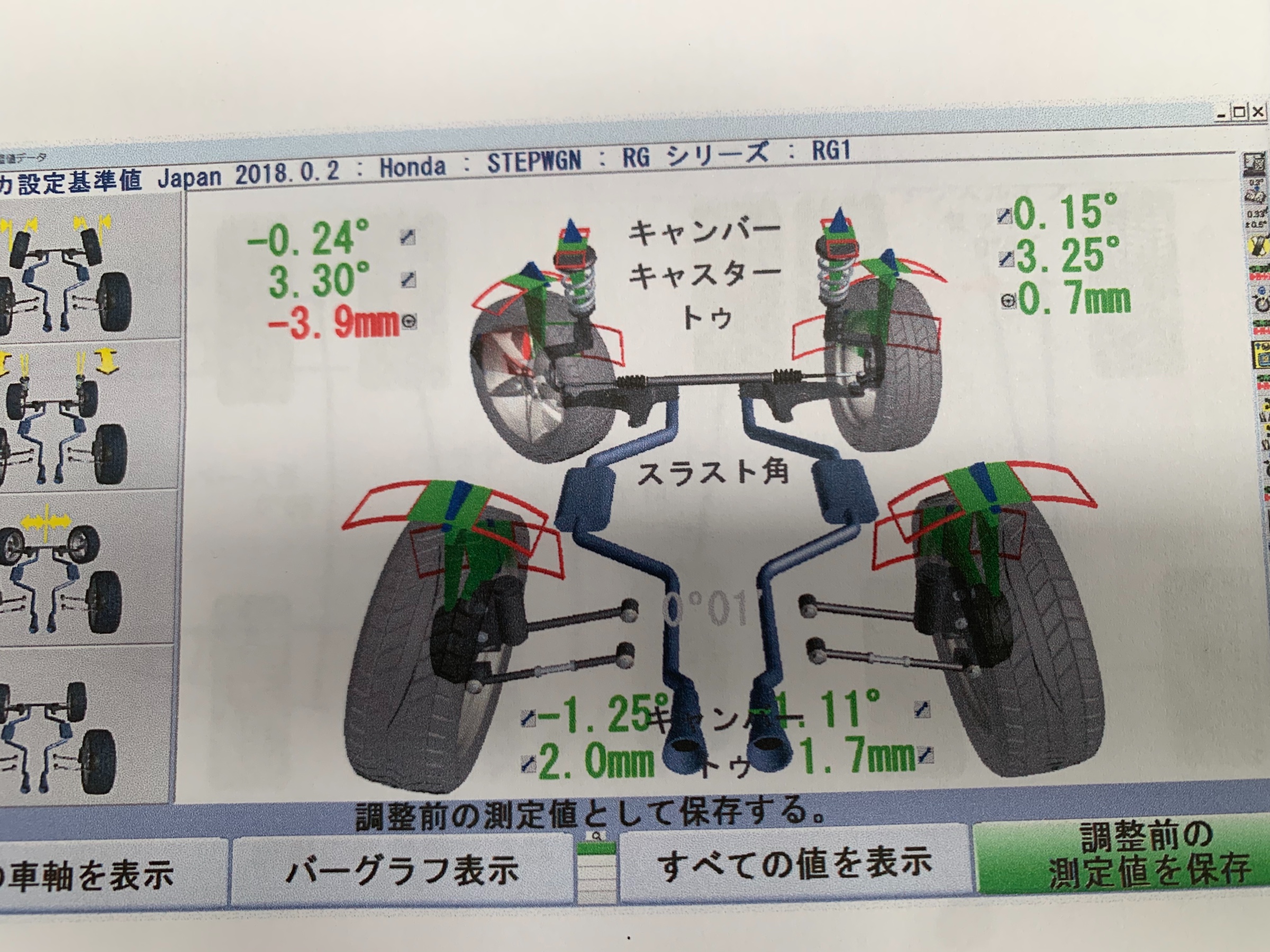 新品タイヤに入れ替えてのアライメント調整で御座います。
