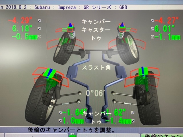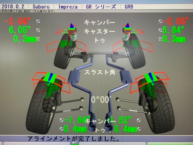 フロントのキャンバー、トーの調整になりました(^O^)