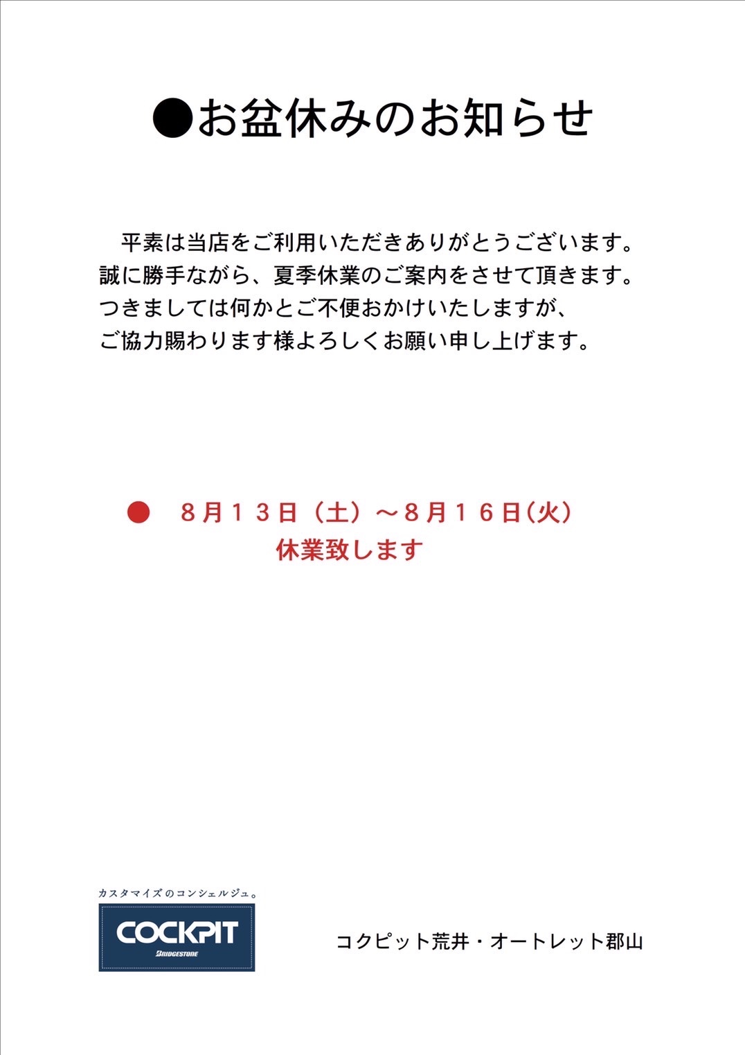 ⬇︎ ⬇︎ 夏季休業のお知らせ ⬇︎ ⬇︎