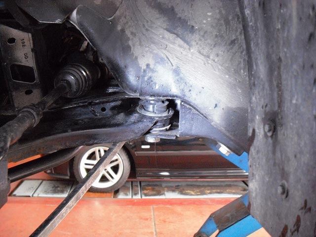 なんとロアアームのブッシュがよれて、ガタガタになってました。