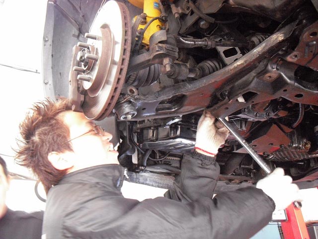 段差を乗り越えた時にカタカタ音がするということで、下回りを点検、