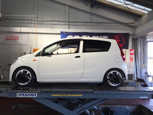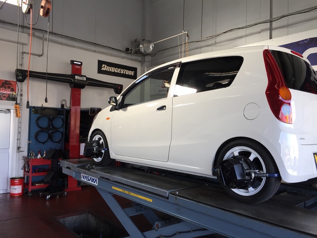 軽自動車も、3Dアライメントテスターにてしっかり調整です。