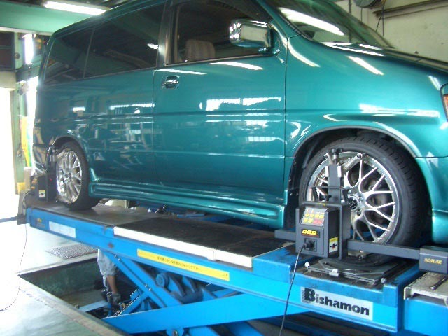 タイヤ交換と一緒に4輪アライメント作業でございます。