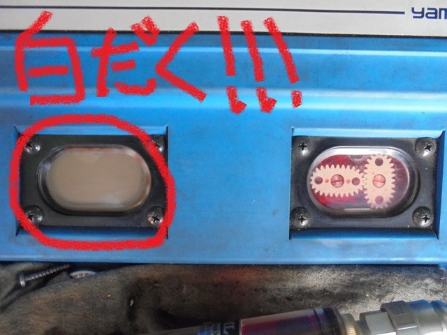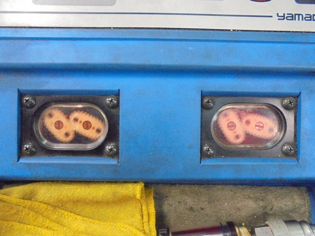 向かって左側の機械の小窓・・・廃油側です。。。