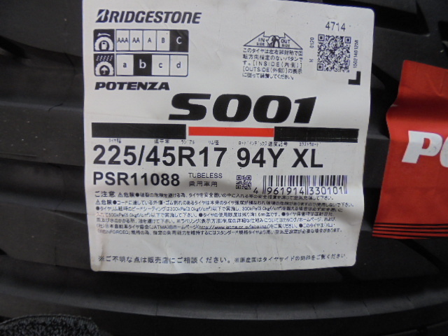 純正サイズの225/45R17 S001を装着します!!